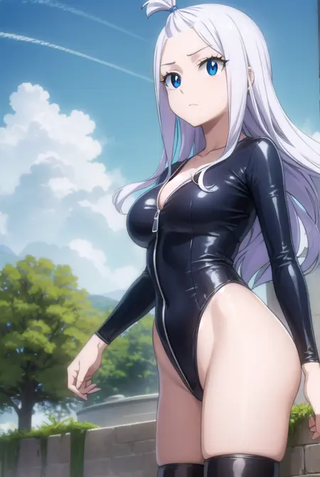 mirajane strauss, 긴 머리, 파란 눈, 하얀 머리, 이마,