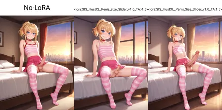 This is a slider for IllustriousXL designed to provide fine control of penis sizes. This is a bipolar slider LoRA - meaning that is supports both positive and negative input weights!