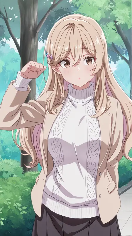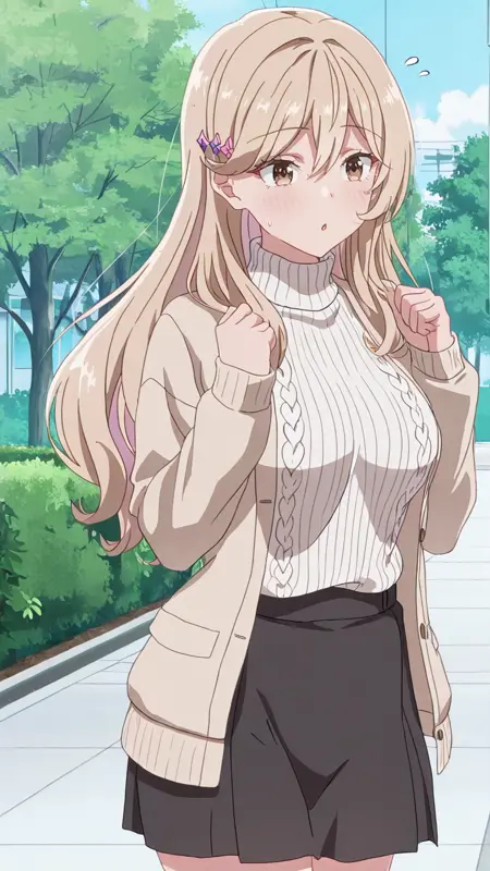 Trigger Words: AjisaiSena, brown eyes, blonde hair, long hair, hair bangs, hair between eyes, hair ornament, stars hair clip, medium breasts,