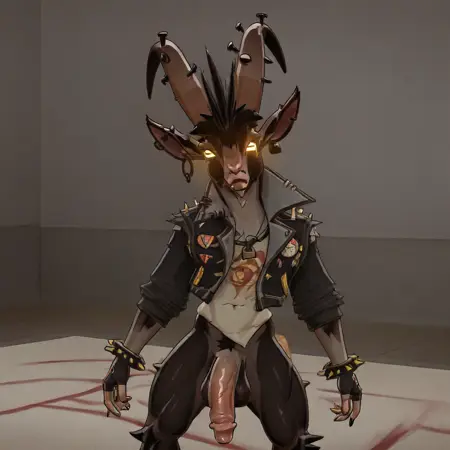 B1llY_D34DL0CK, anthro, goat, 1boy, male, ear piercing, long horns, gray and black fur,
