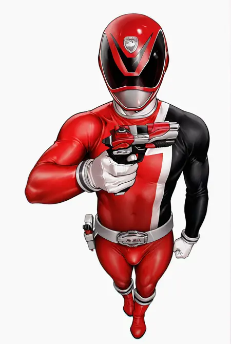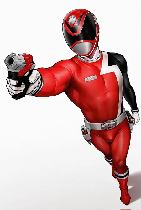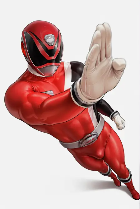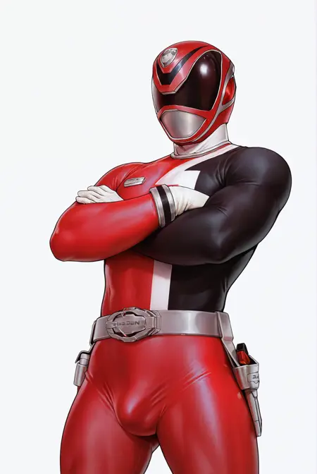 deka red, belt, white gloves, gloves, helmet, mask, bodysuit, red bodysuit, tokusatsu, boots