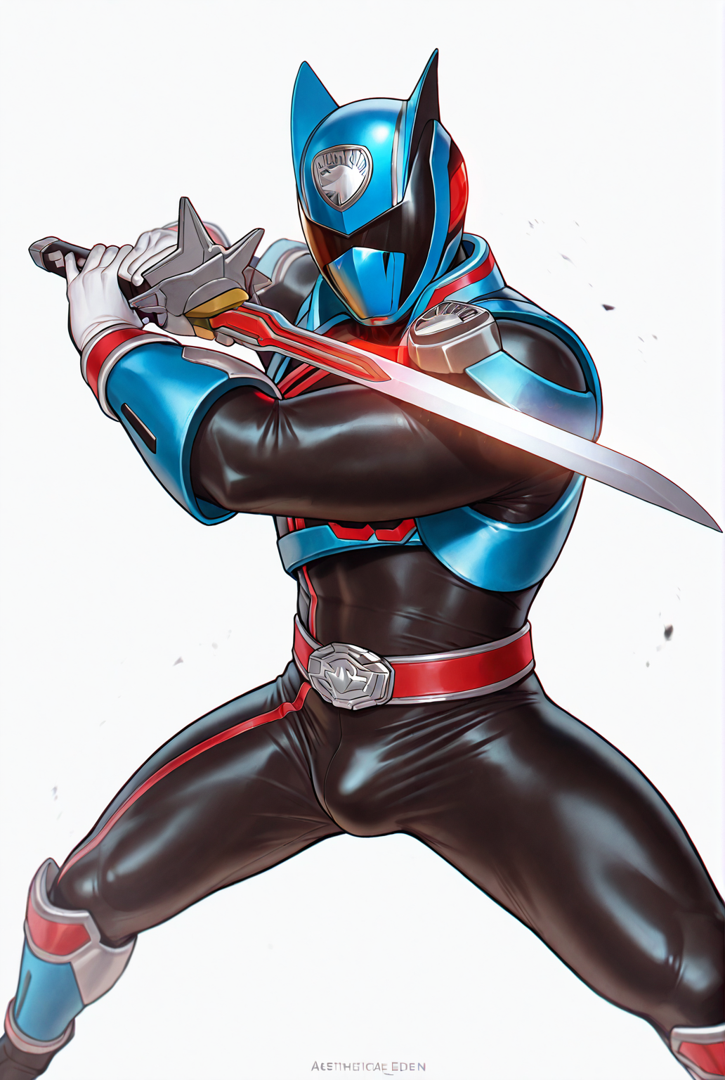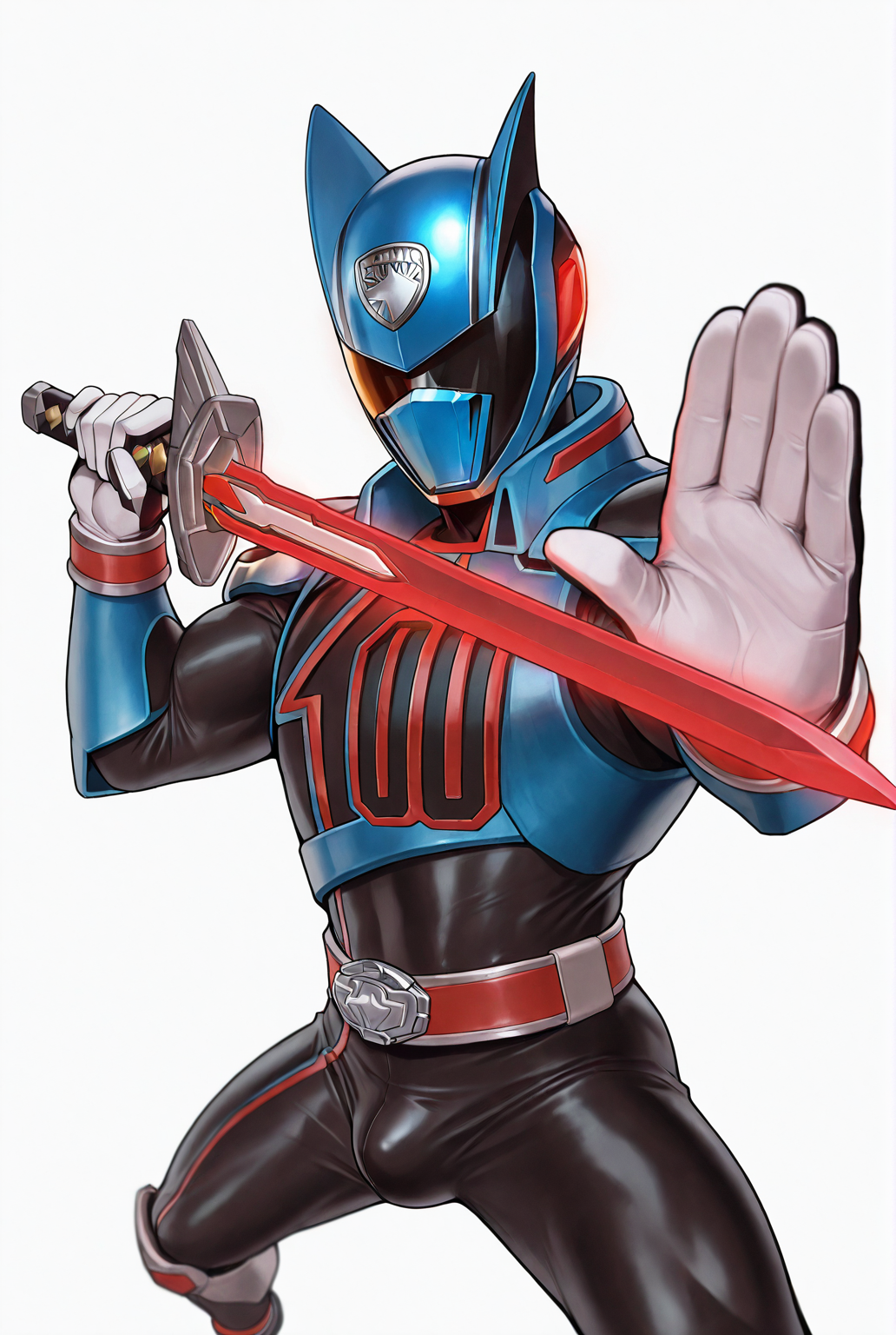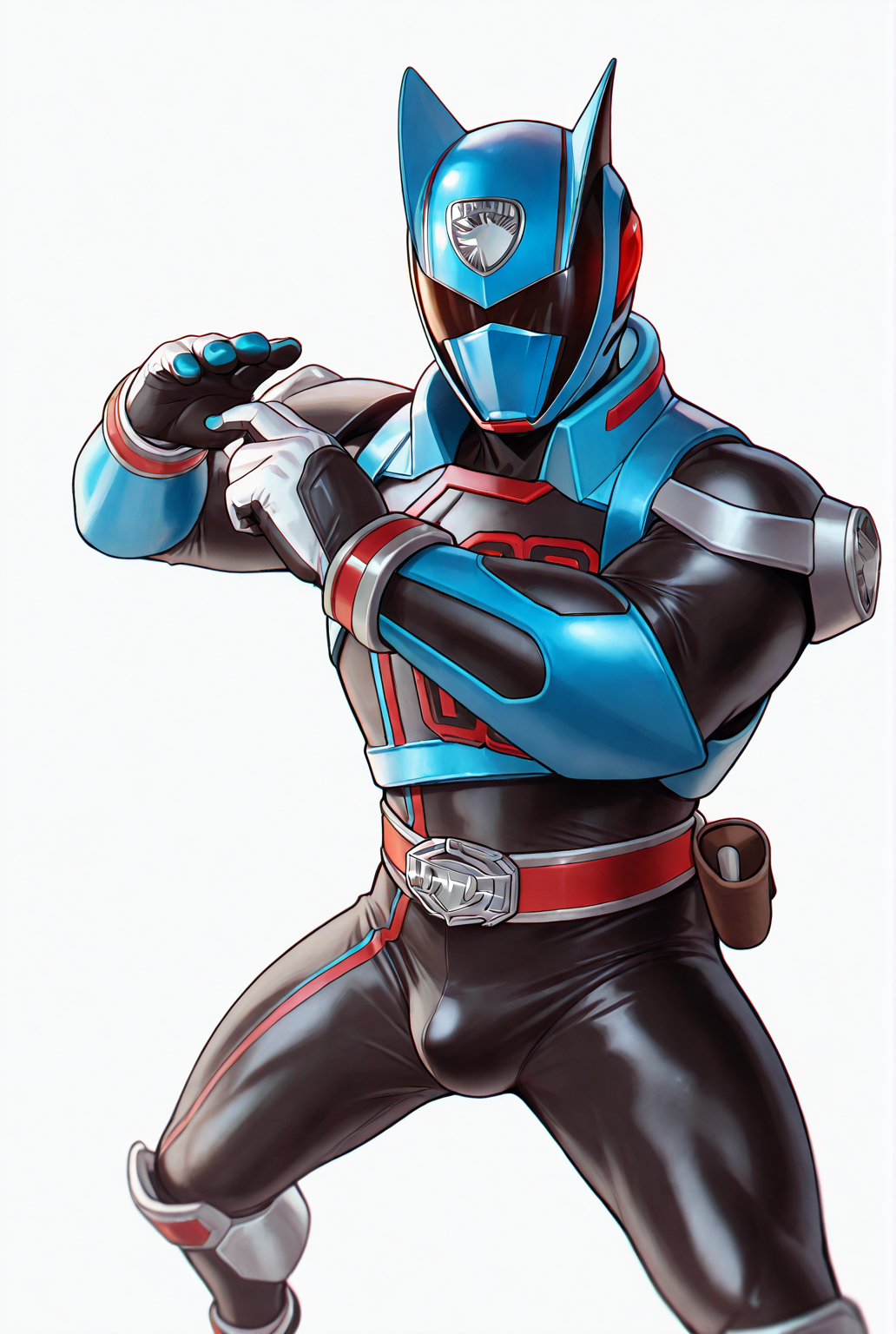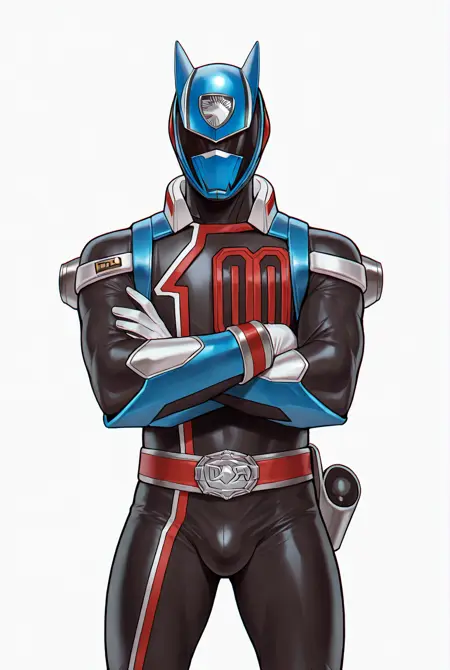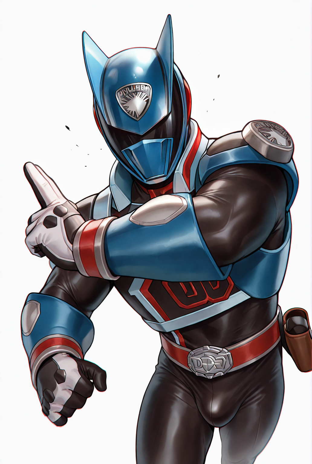 deka blue, belt, white gloves, gloves, helmet, mask, bodysuit, blue bodysuit, tokusatsu, boots
