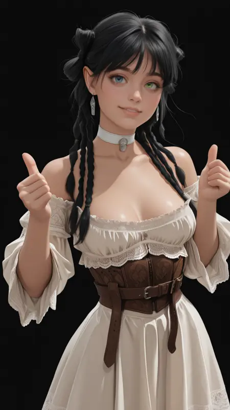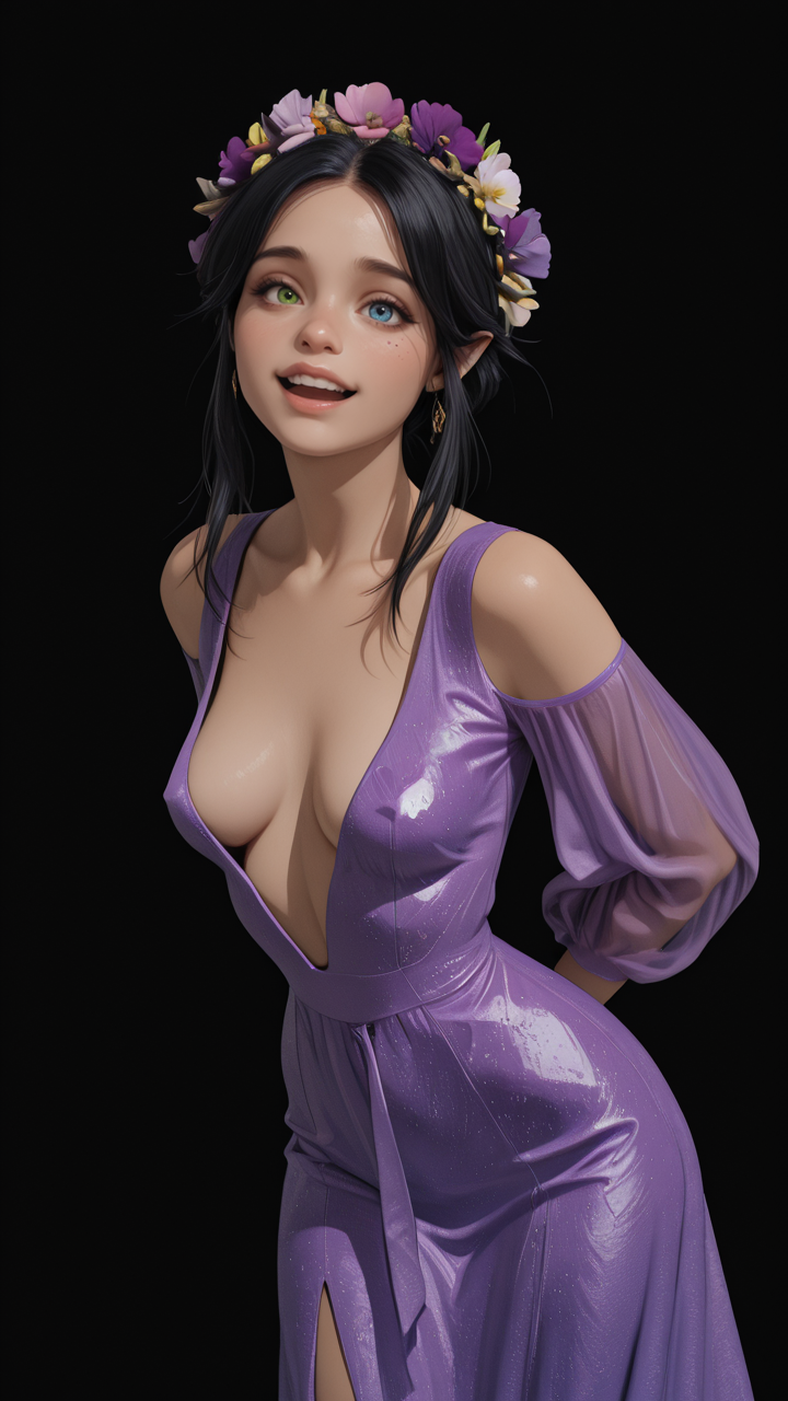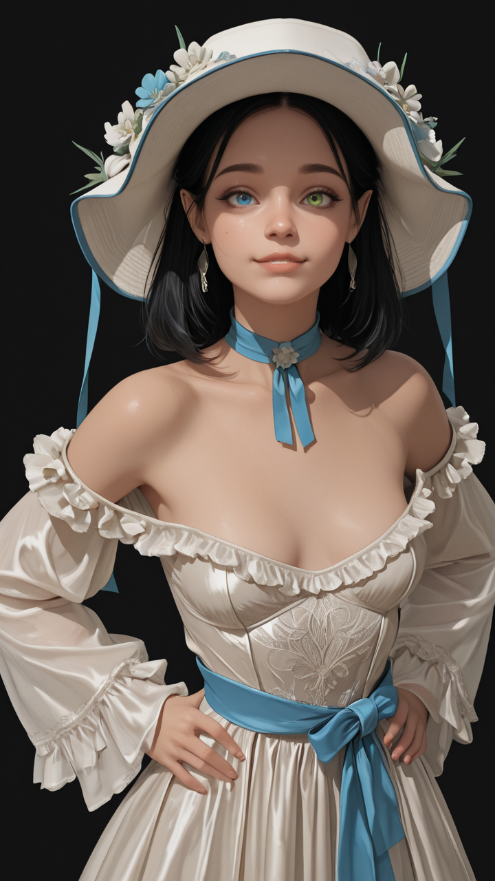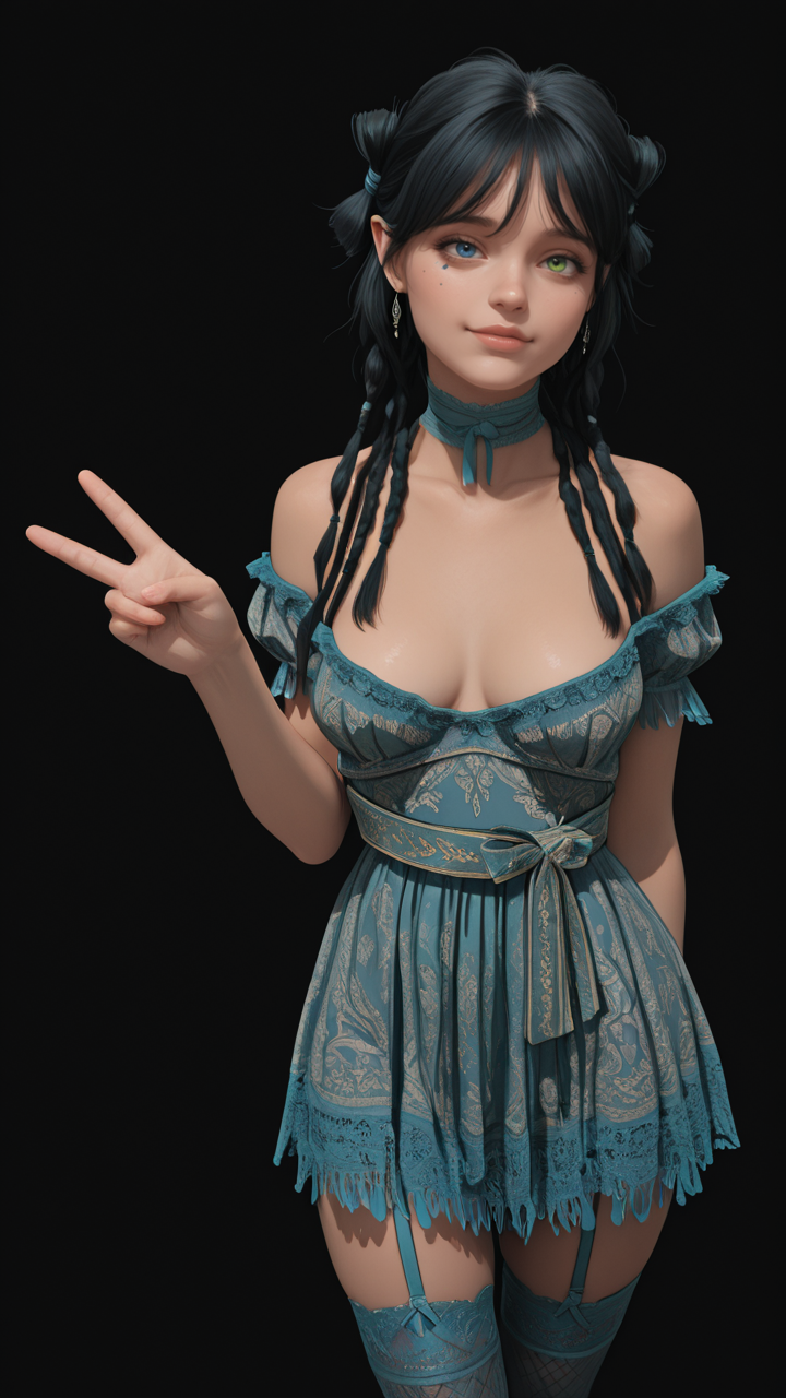 The lora producing the character's mismatched eye colors (heterochromia) is wildly inconsistent. I used ADetailer and added heterochromia, right blue eye, left green eye in ADetailer's prompt to emphasize the eye colors.