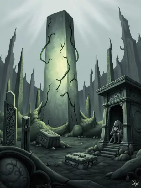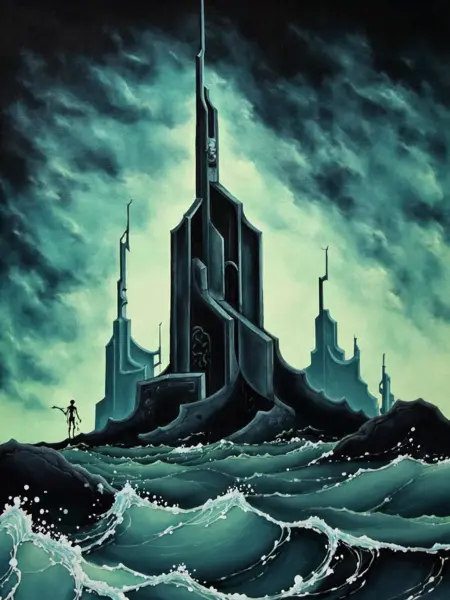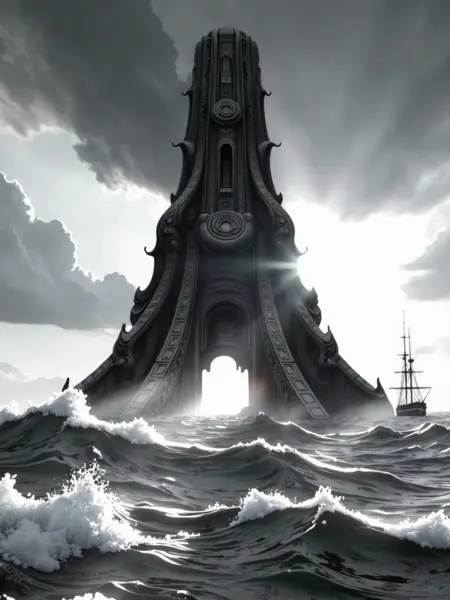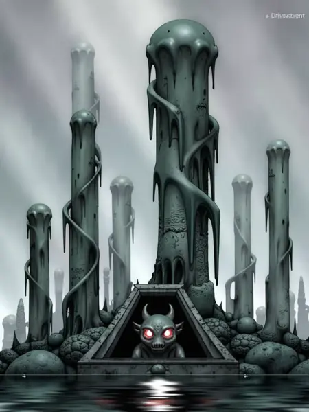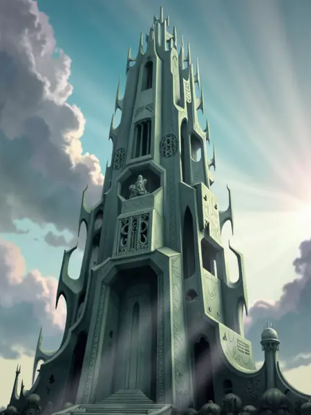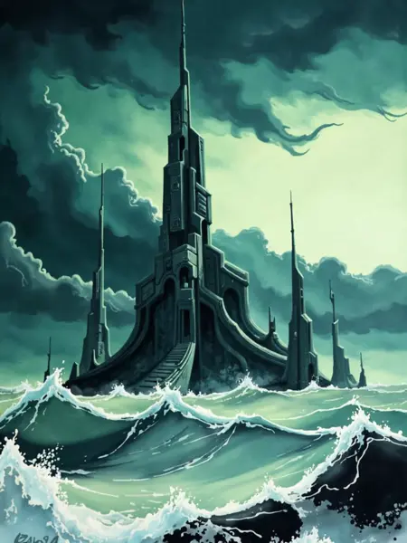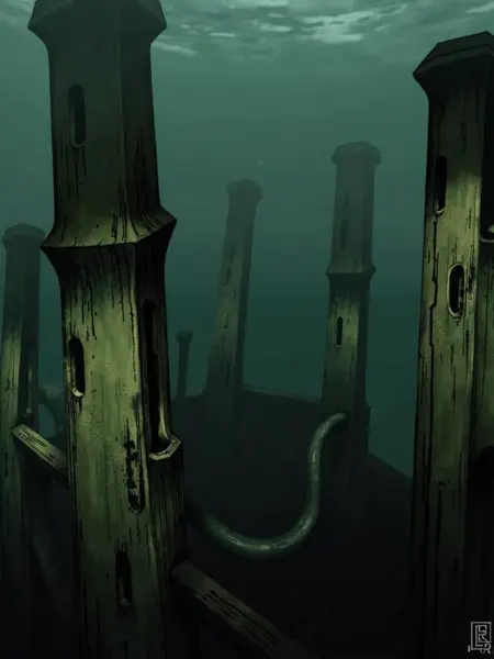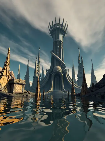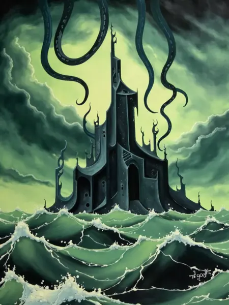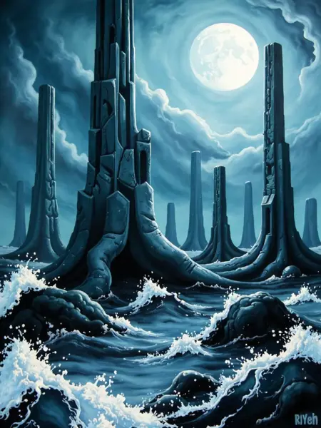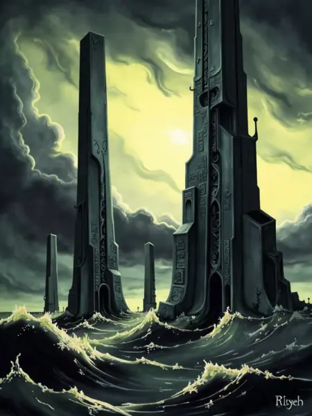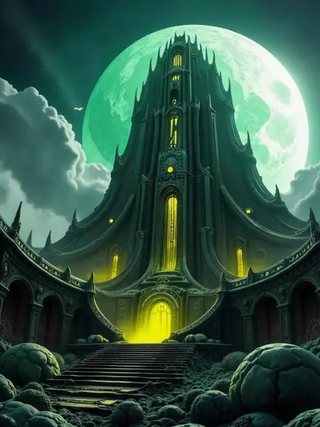 V1.0 better fits the popular cultural stereotype of a 'Cthulhu Castle/Temple' but deviates from R'lyeh's Non-Euclidean geometry. It looks more like a cultist spire tower with tentacle pattern. Therefore, I created V1.1 to align more closely with R'lyeh's Non-Euclidean spirit. It is more abstract and feels less like a man-made castle.