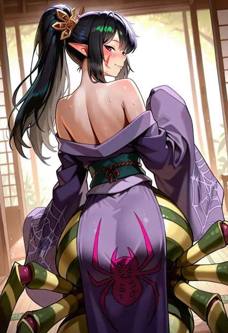 ⚡ Additional Info: Trained on Illustrious v0.1 using Kohya with granular tag separation for maximum flexibility. Each clothing piece and character detail is individually tagged, allowing you to easily modify specific elements like hair color, spider features, or traditional outfit pieces without affecting other features.
