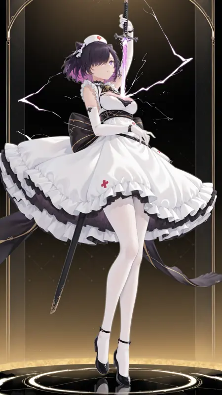 **Optional clothing tags衣服 :**diertaoHMS,dierHMS black and gold belt,dierHMS coronet,dierHMS ankle strap,dierHMS neck bell,dierhms black and gold neck bow,dierHMS black footwear,dierhms black and gold back bow,dierHMS white dress,dierHMS white elbow gloves,frills,dierHMS nurse cap,dierHMS head ribbon,dierHMS white pantyhose,