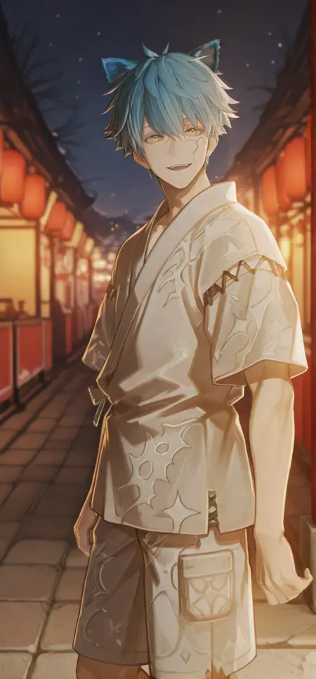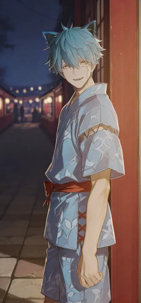 Trigger words: japanese clothes,kimono,yukata,short sleeves,cross-laced clothes,shorts,sandals,flip-flops,zouri,striped kimono,vertical-striped kimono