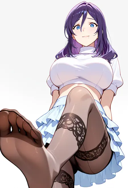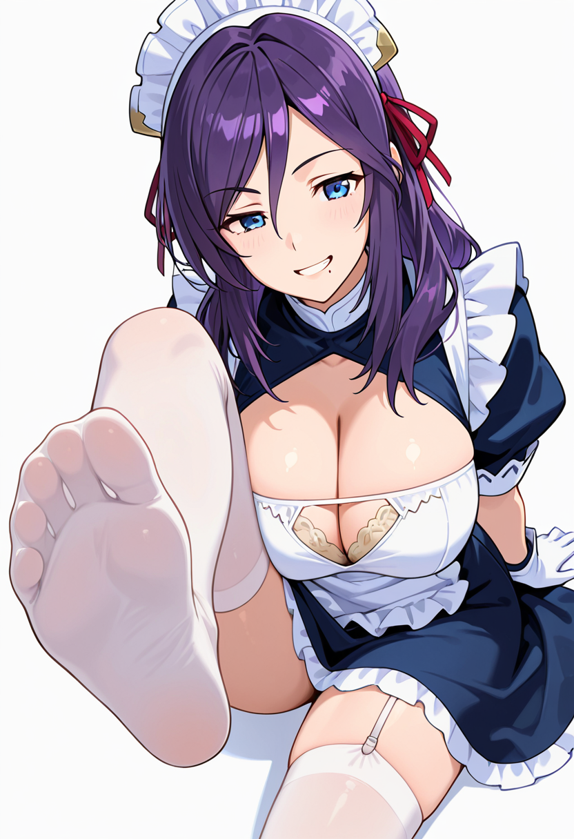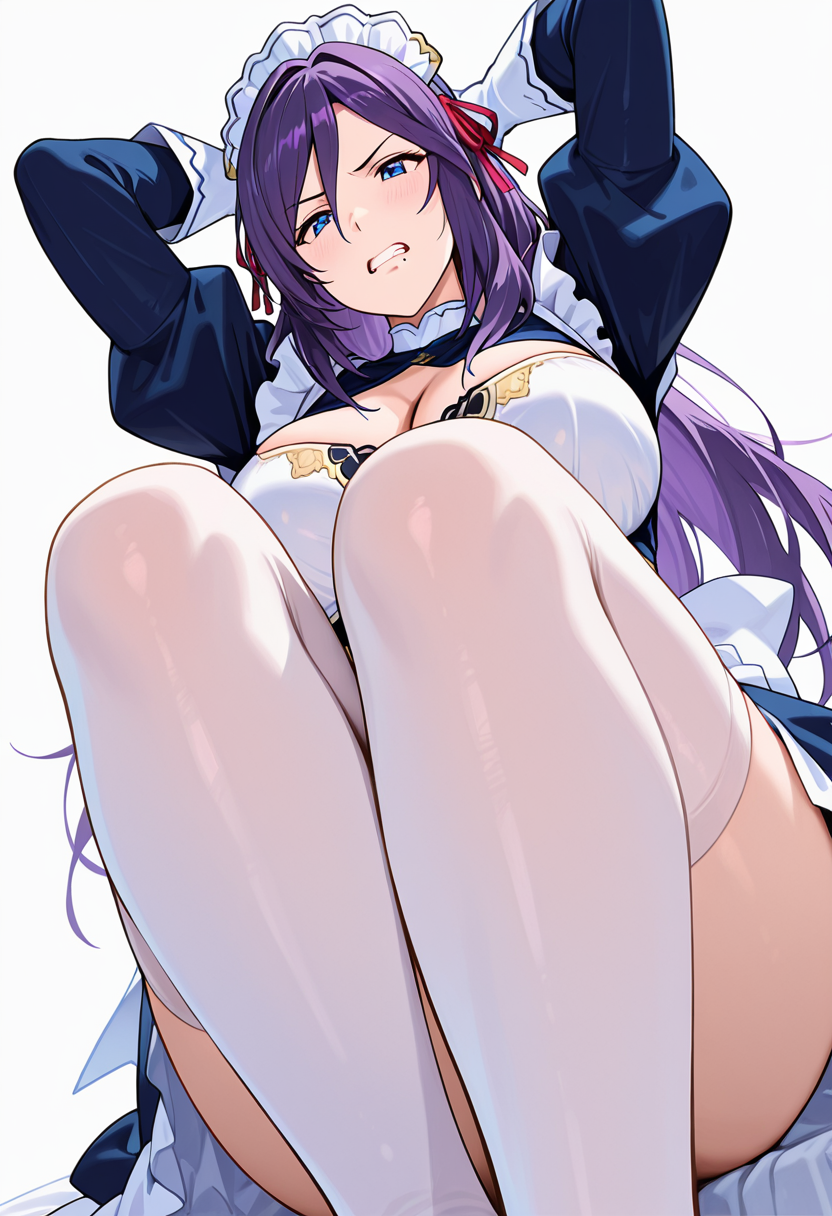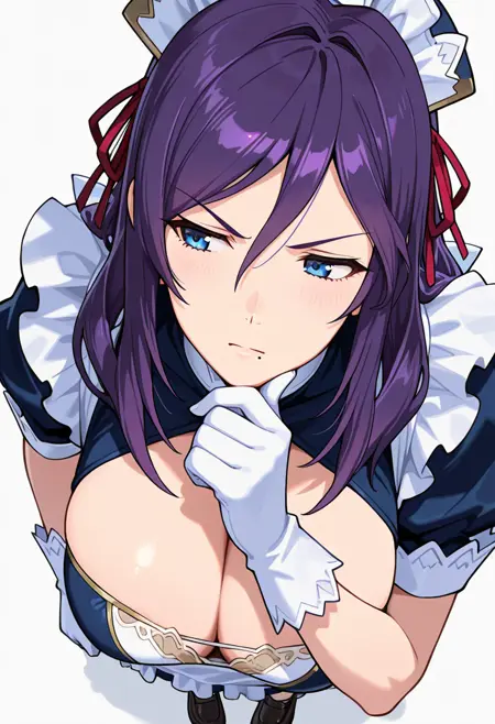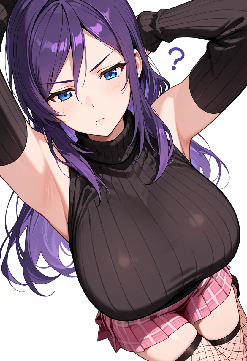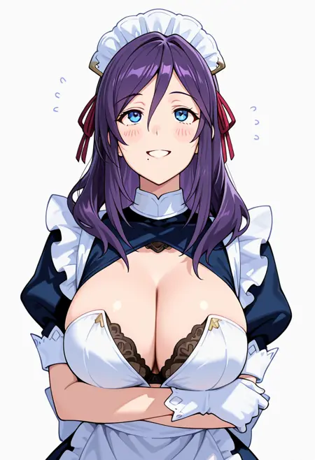 mikako_cnr, 1girl,purple hair,blue eyes,large breasts,long hair, mole under mouth,
