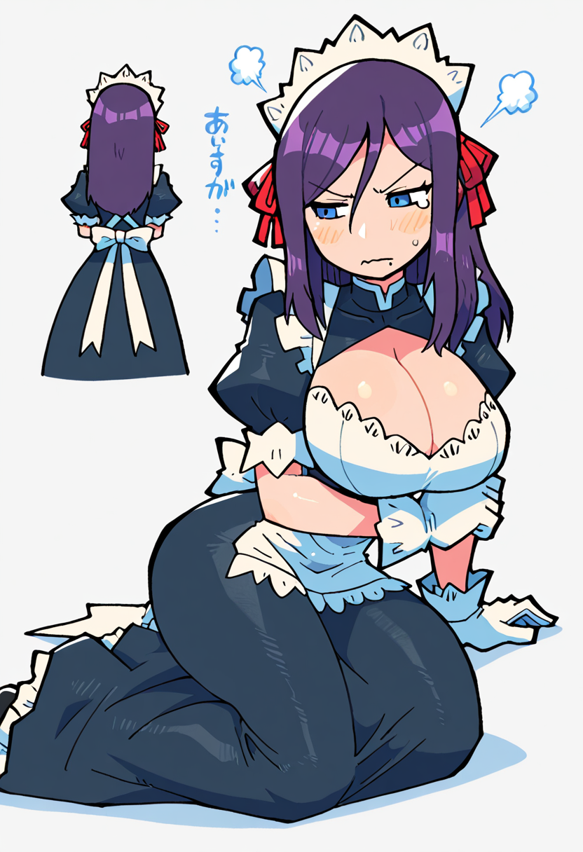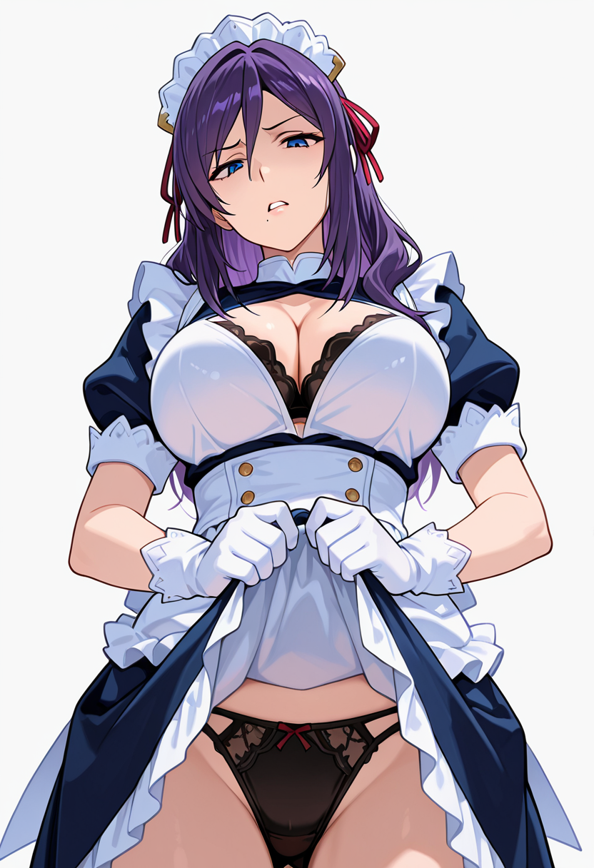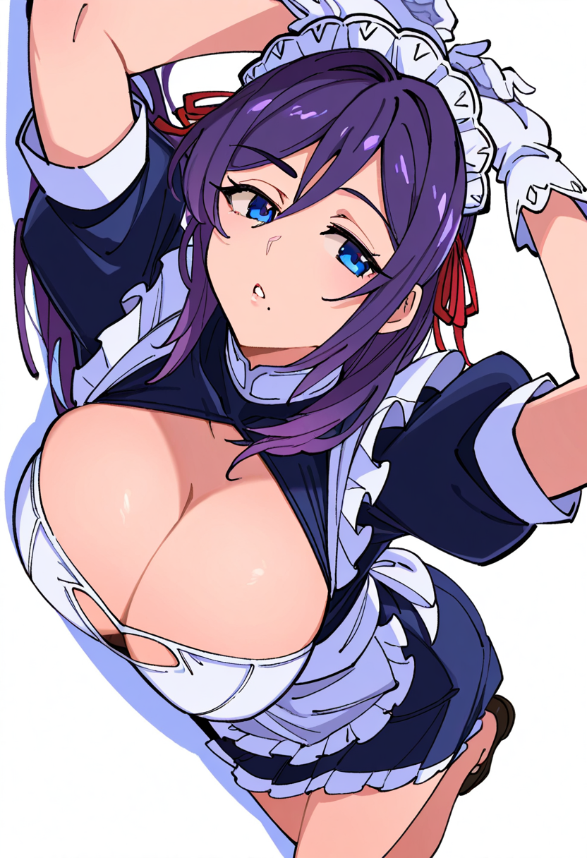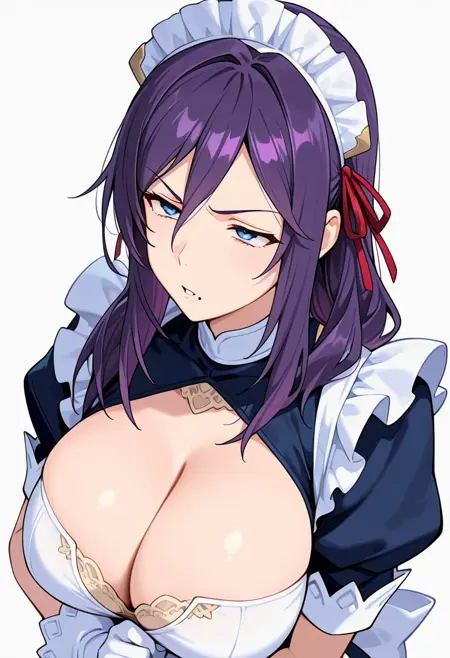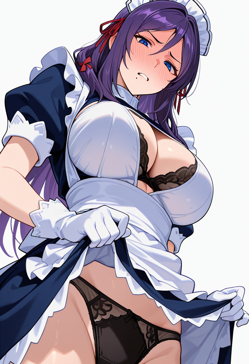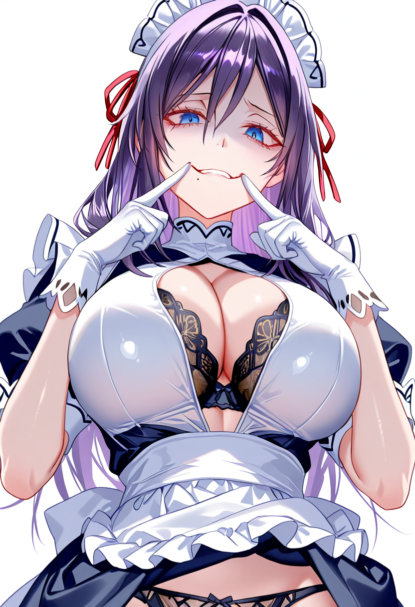 ns1_cnr,bra,cleavage cutout, lingerie, maid, puffy sleeves, underwear, white gloves,hair ribbon, maid headdress,cleavage cutout, clothing cutout,