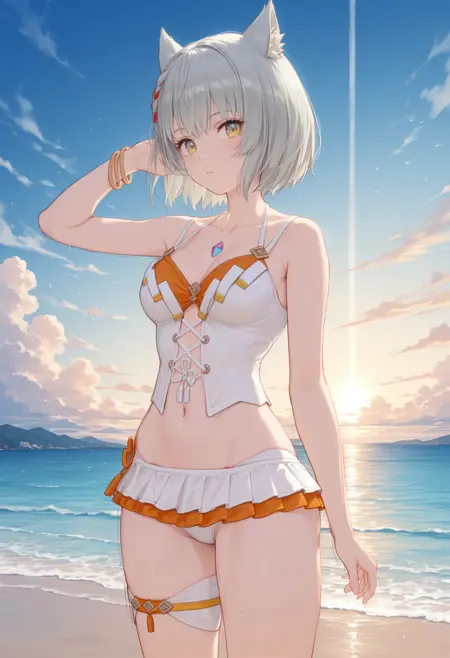 mio, 단발, 가슴 보석, 노란 눈, 땋은 머리, 고양이 귀