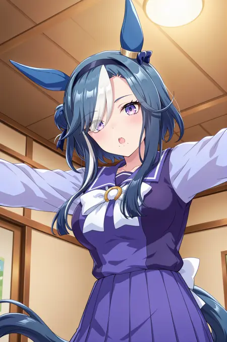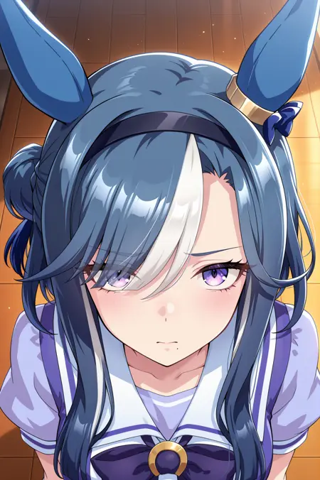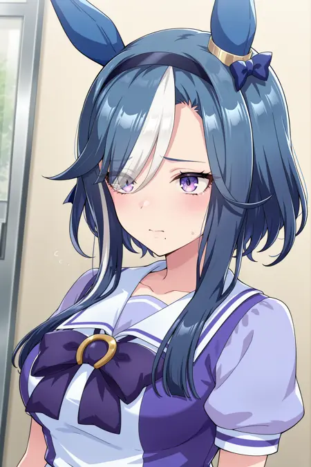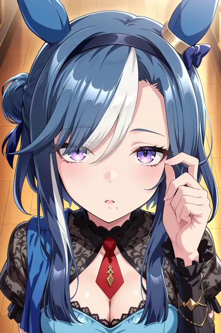 어찌되었든 참고용으로… umamusume, 동물 귀, 말 귀, 말 소녀, 싱글, 파란 머리, 보라색 눈, 다색 머리, 머리 땋기, 귀 커버, 귀 리본, 중간 크기 가슴, 하얀 머리, 이색 머리, 줄무늬 머리, 귀 장신구, 검은 헤어밴드, 중간 길이 머리, 입 밑 점, 파란 리본, 짧은 머리에 긴 머리카락, 머리카락 사이로 보이는 눈, 한쪽 눈 위의 머리카락,