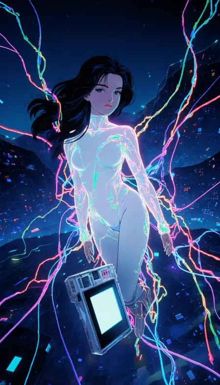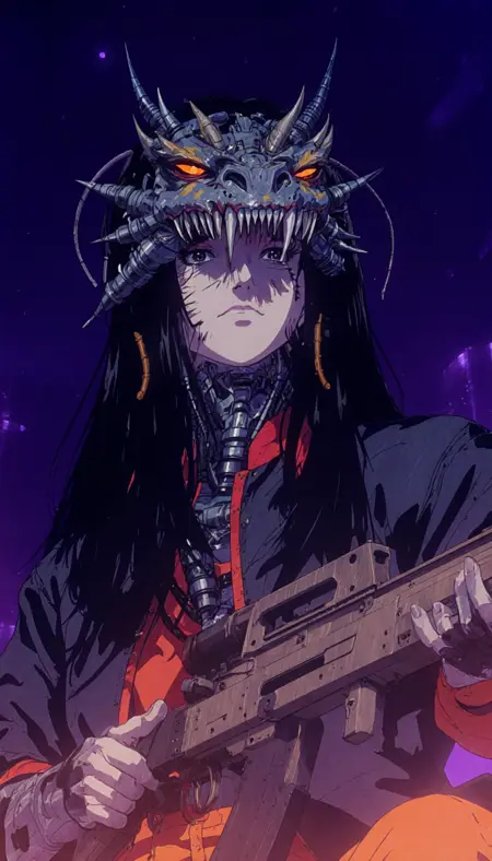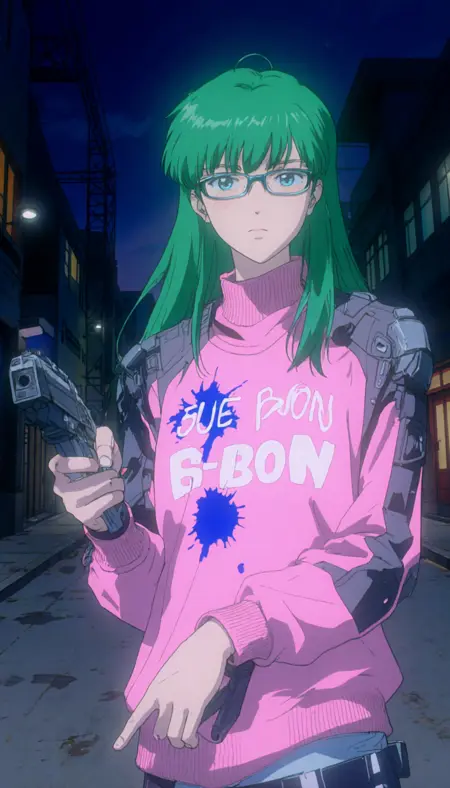 A LoRa created with a mix of 80s and 90s anime and generated images in the same style. It generates images with a delightfully dark and sci-fi feel. There are some issues with the weapons being generated correctly, as I was careless and didn't add them to the dataset, but with Krea it gets better.