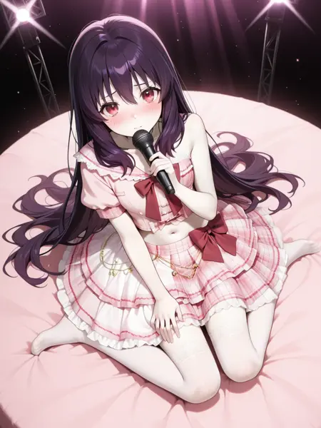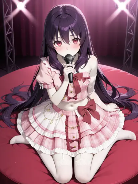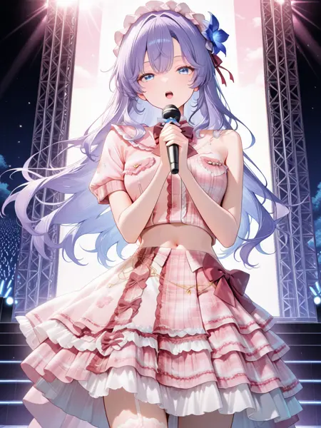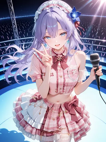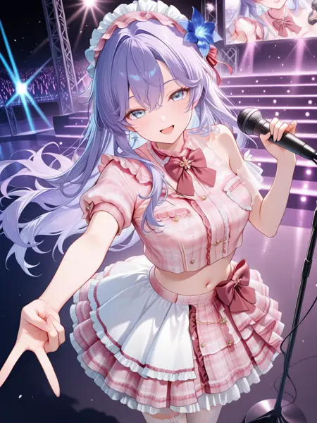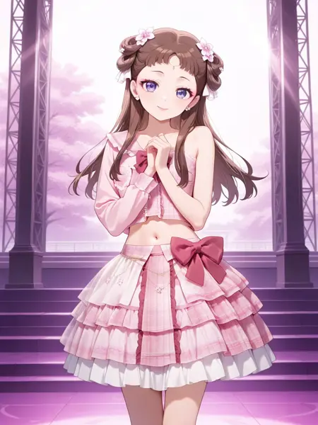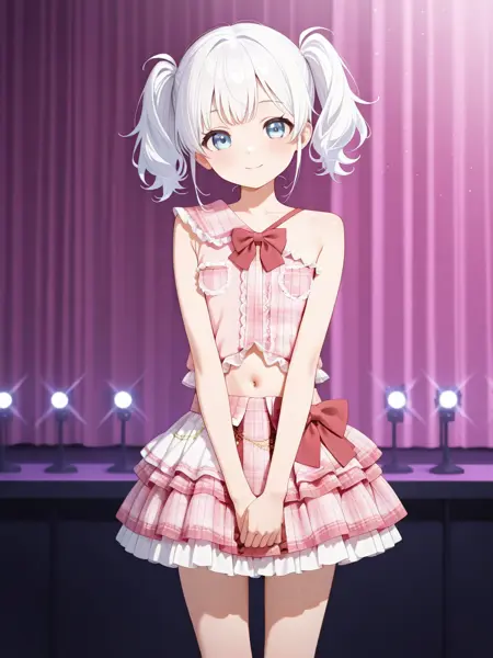 While the hat was trained separately, its results are often poor. When used with character LoRAs or at lower camera angles, the hat becomes heavily distorted and poorly matches the outfit. So these hat prompts are not included in the side panel: "plaid hat, pink hat bow, lace trim".