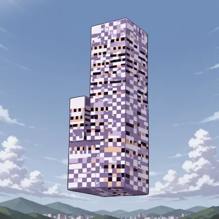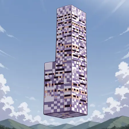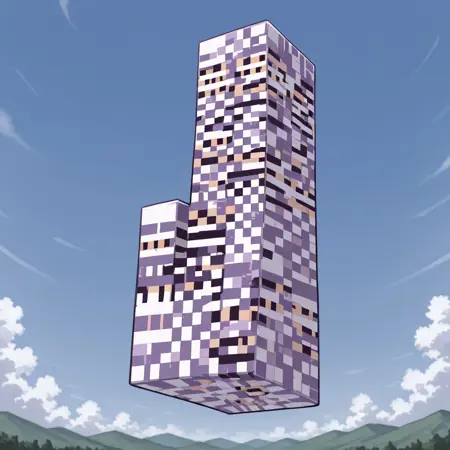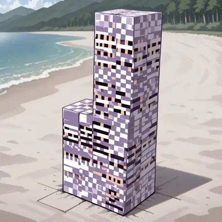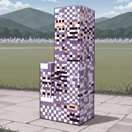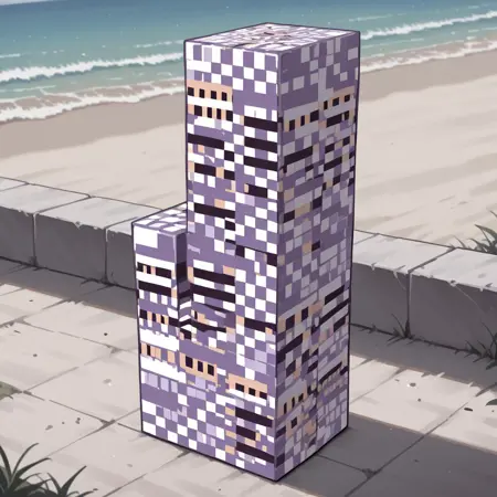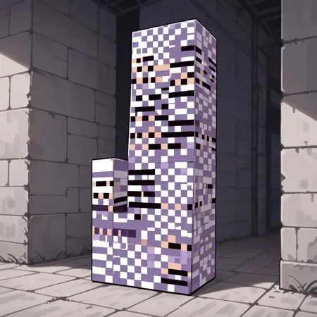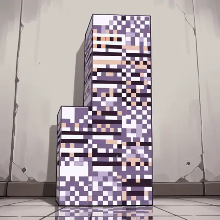 missingno, l-shaped block, glitchy texture, tan spots, purple spots, black spots, white spots, singular square eye