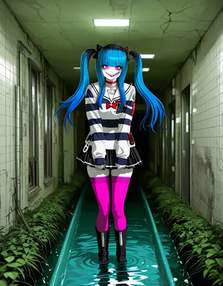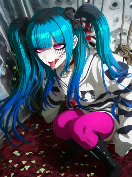 | 训练词汇 | the_hundred_line_-last_defense_academy-, amemiya_darumi, official_art, hundred_line_sprite_(style), 1girl, full_body,white_skin, multicolored_hair, blue_hair, black_hair, long_hair, twintails, hair_bow, black_bow, bow, pink_eyes, facial_mark, heart_facial_mark, makeup, creepy_smile,striped_clothes, long_sleeves, red_choker, choker, heart, piercing, safety_pin, black_skirt, pleated_skirt, skirt, pink_thighhighs, thighhighs, black_boots, boots已复制! 1girl, amemiya_darumi,armband,black_boots,black_bow,black_hair,black_sailor_collar,black_serafuku,black_shirt,black_skirt,blood,blood_from_eyes,blue_hair,blunt_bangs,bodysuit,boots,bow,collarbone,full_body,gradient_hair,hair_bow,knee_boots,last_defense_academy_school_uniform,long_hair,long_sleeves,miniskirt,mole,mole_under_mouth,multicolored_hair,neckerchief,pleated_skirt,red_eyes,sailor_collar,school_uniform,serafuku,shirt,skirt,smile,the_hundred_line_-last_defense_academy-,two_side_up,very_long_hair,white_armband,white_bodysuit,white_neckerchief已复制! |