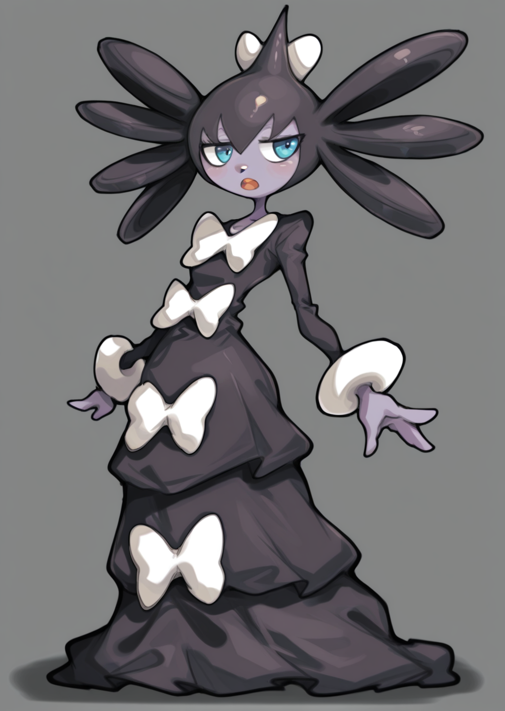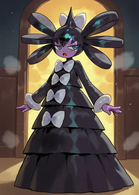 프롬프트: gothitelle, 검은 드레스, 흰색 리본, 프릴,
