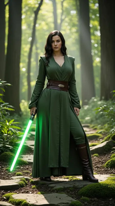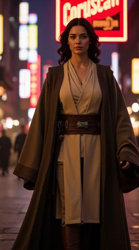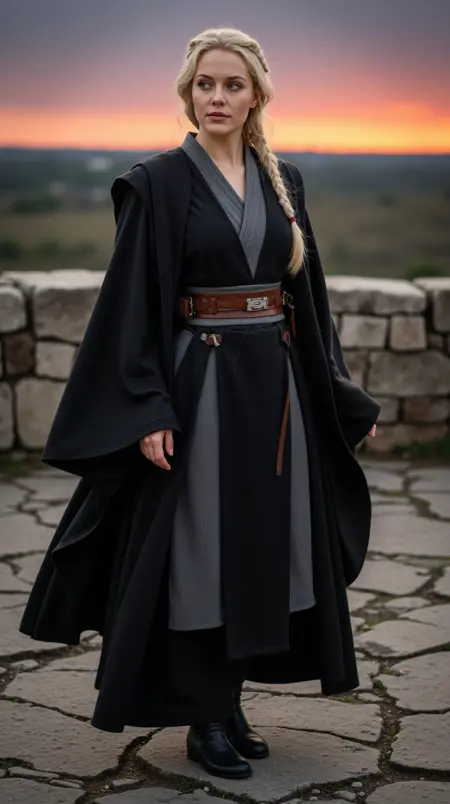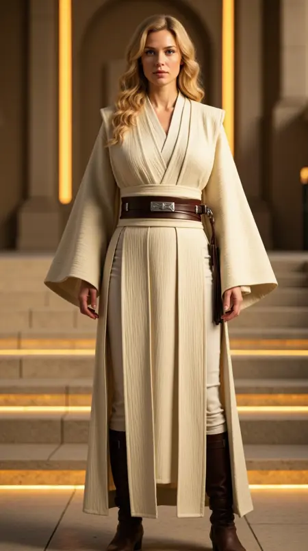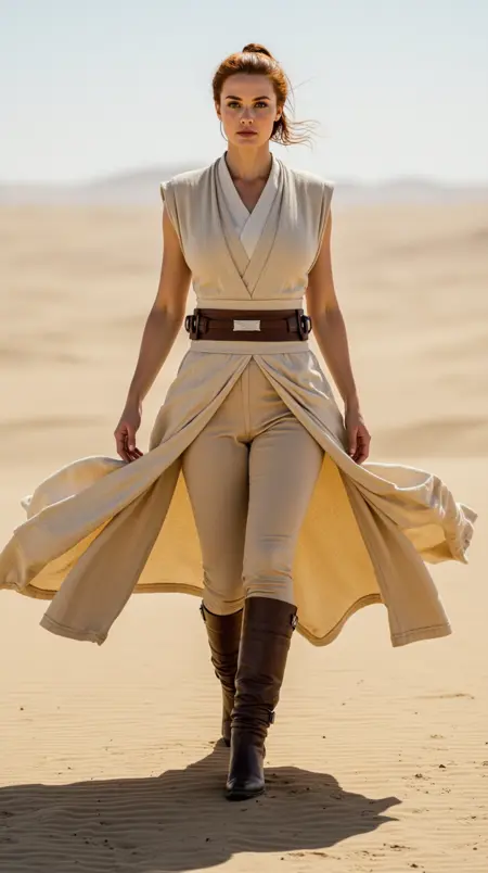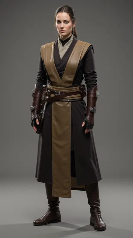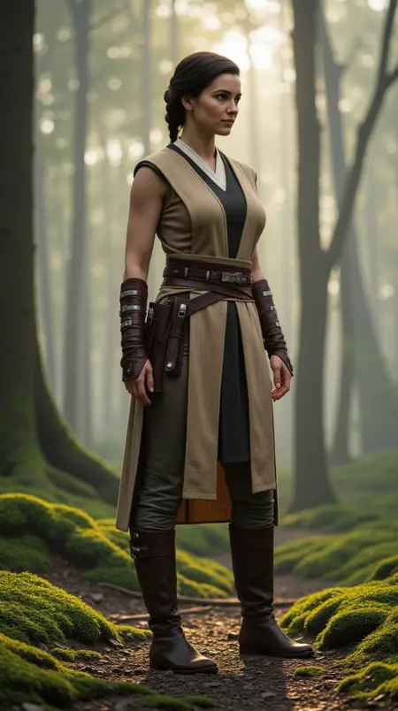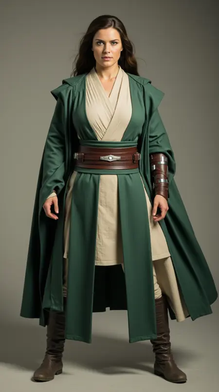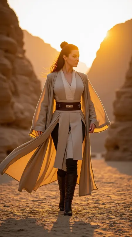 FORCE Mk.1 是 FullRobeLady 的《星球大战》灵感分支,训练数据聚焦于实用的绝地风格长袍,但不复制任何特定角色。它专注于多层次的长袍、外衣、腰带、长裤、靴子,以及塑造标志性绝地轮廓的布料流动感。目标不是角色扮演,而是以照片级细节再现一种 grounded、电影化的绝地美学氛围。
