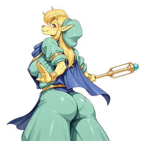 在 GBA 重制版中,我听说她可以穿上女仆装,她的法杖会变成一把扫帚。如果你正在玩这款游戏,请用这套服装进行 IMG2IMG 处理并分享出来,因为在重制版中她更接近人类形象。