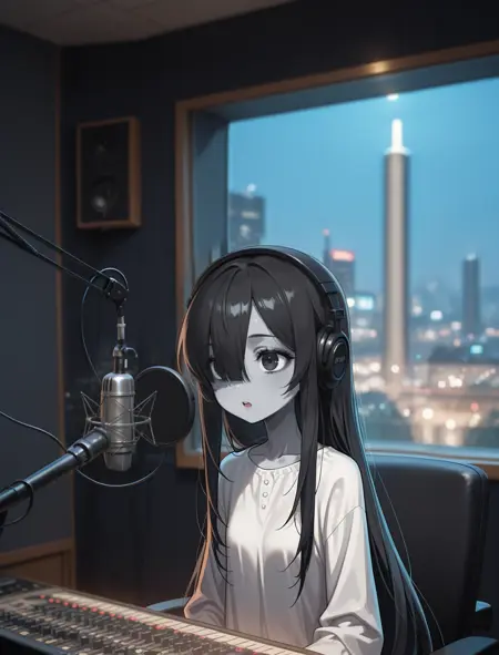 radbc, radio host, radio studio, microphone, boom arm, pop filter, mixing console, headphones, speaking,