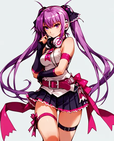 긴 머리, 트윈테일, 보라색 머리, 보라색 눈