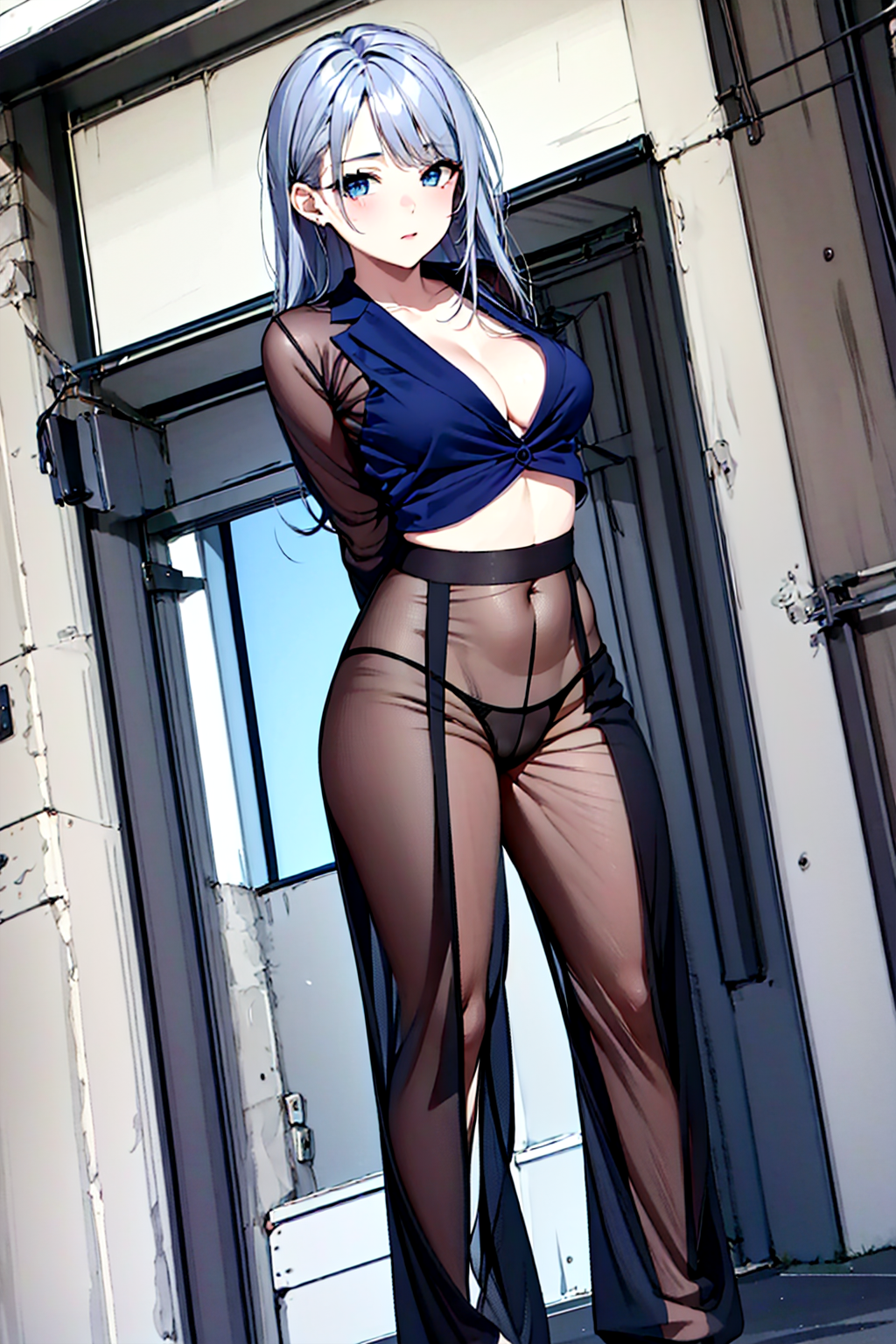 穿着透明衬衫和裤子的办公女性装扮。❤️