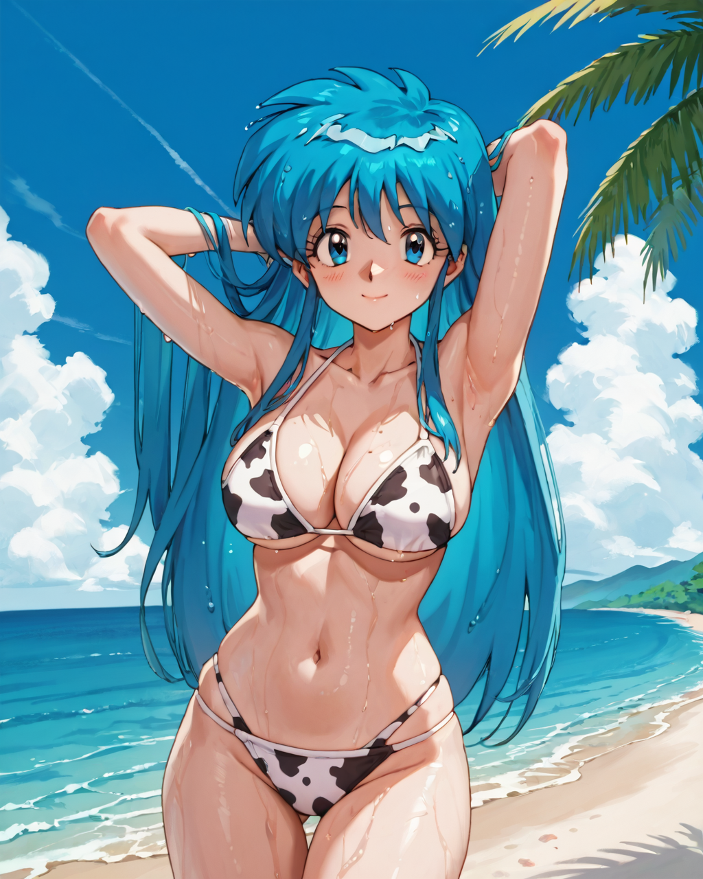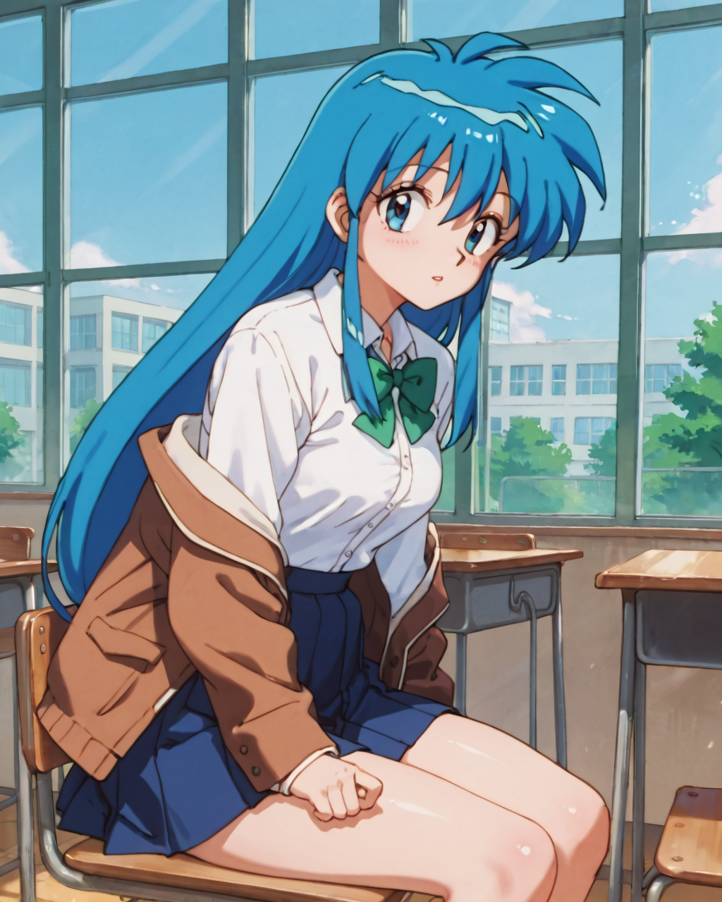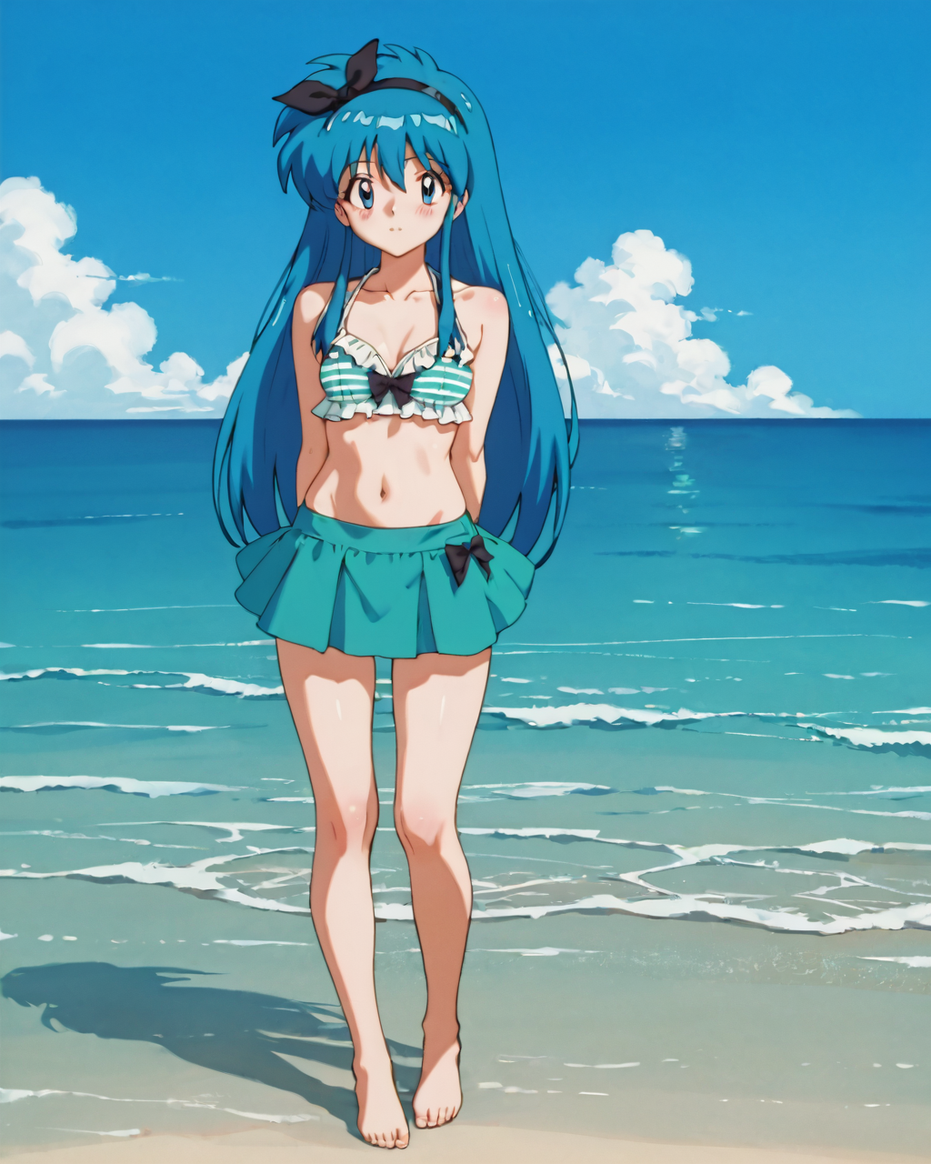 • 冰室絹,絹,1girl,长发,蓝发,浅蓝色眼睛,紧身衣,白色泳衣,连体泳衣,乳沟