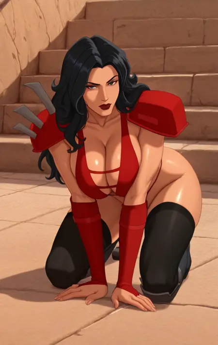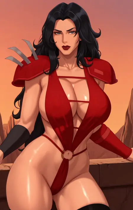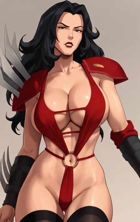 | Trained Words | 1girl, solo, long hair, breasts, looking at viewer, large breasts, black hair, thighhighs, navel, cleavage, jewelry, bare shoulders, large breasts, collarbone, thighs, cowboy shot, dark skin, detached sleeves, dark-skinned, pauldrons, muscular female, red lips, pelvic curtain, red armor,h3avym3t4l,Copied! |