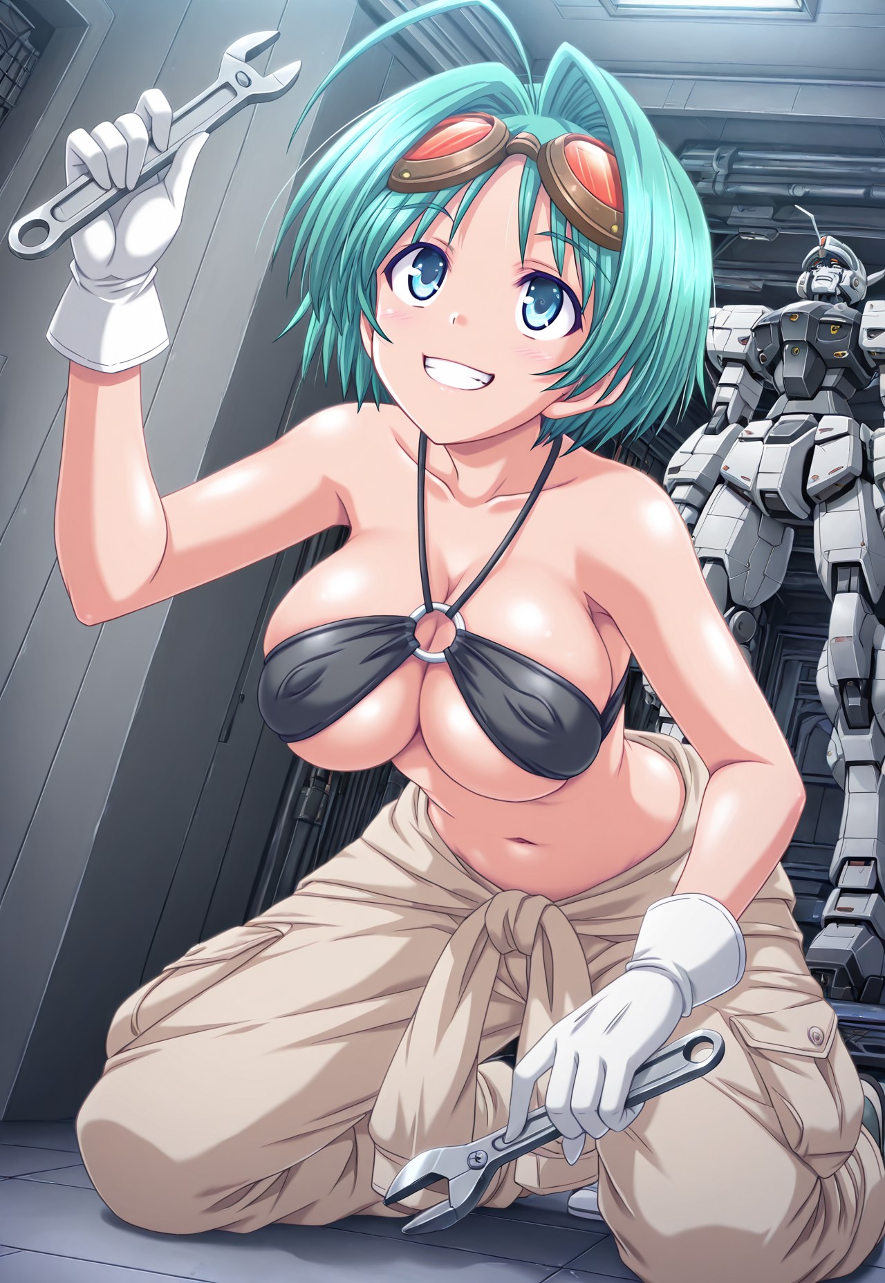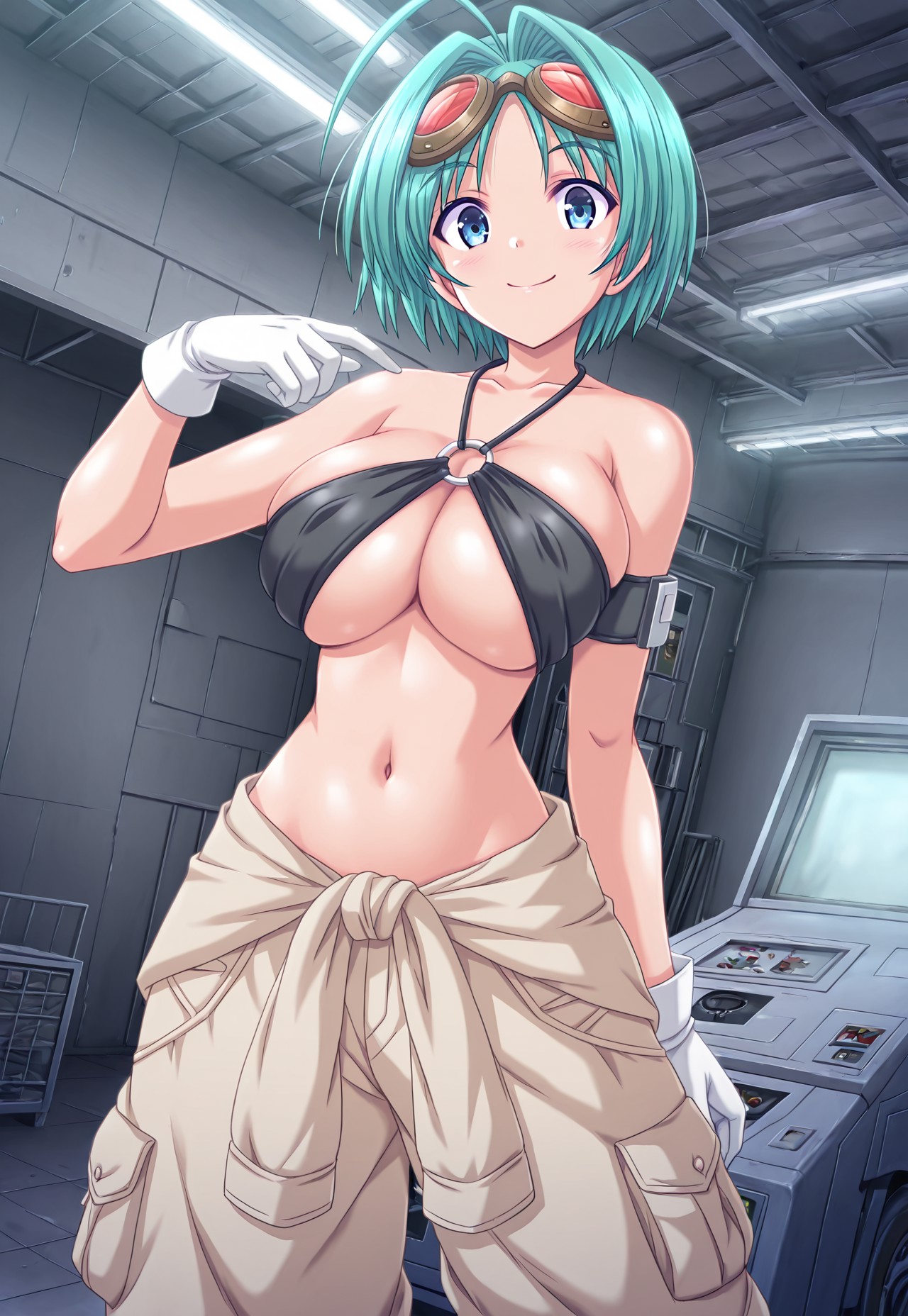이츠키는 아오조라 기관의 직원이다. 창고 내 온도가 높기 때문에 그녀는 코트 없이 근무할 수 있다.