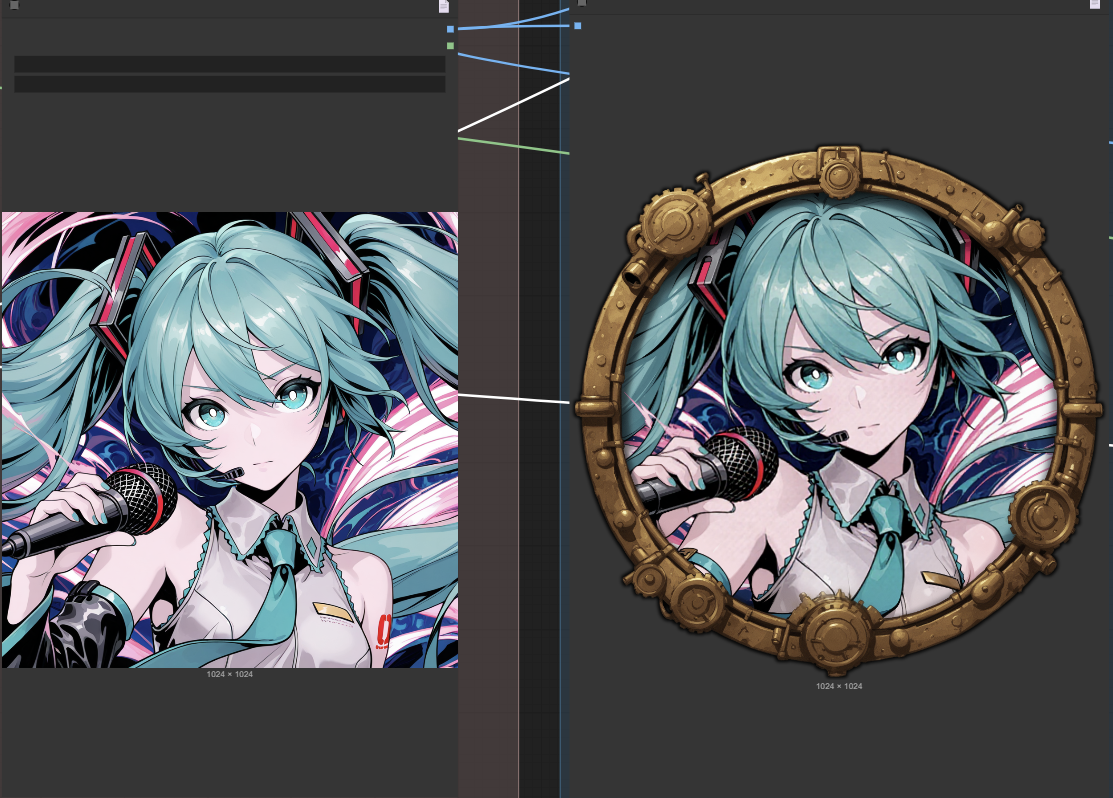 압축 파일 내의 “frame-original.png”를 input 그룹의 “frame-original” 노드에 넣으세요.