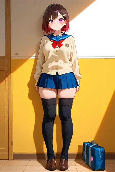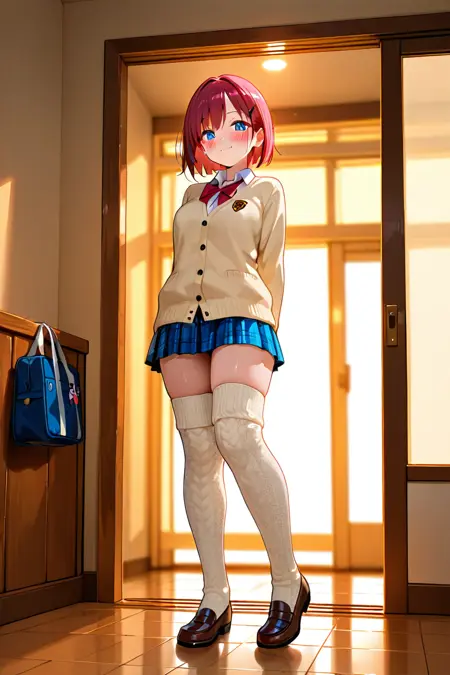 心地よく分厚いケーブルニットのサイハイソックスを再現するLoRAです。