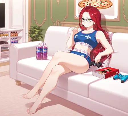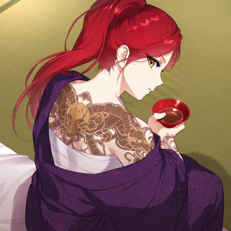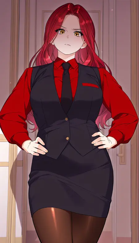 주 프롬프트: louvetria, 빨간 머리, 황금 눈, 긴 머리