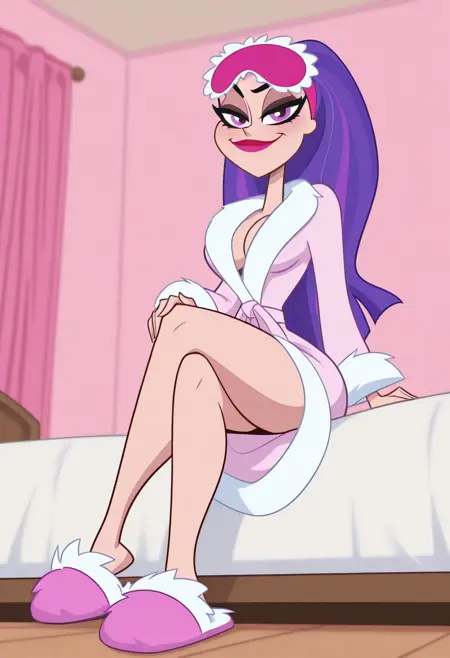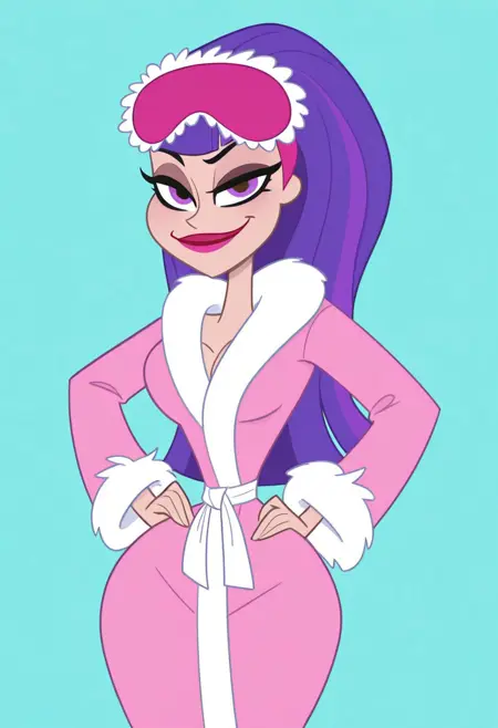 | トレーニングワード | 2d, 1girl, solo, dcshgZZ, long hair, purple hair, blunt bangs, purple eyes, lipstick,コピーしました! ZZatara, white collared shirt, long sleeves, baggy sleeves, black vest, black necktie, dark pink skirt, pencil skirt, black boots, knee boots, heeled boots,コピーしました! Zatanna, glowing hair, sparkles on hair, multicolored hair, black cape, black leotard, long sleeves, white trim, red pendent, cleavage cutout, grey pantyhose, black thigh boots,コピーしました! wearing top hat, black hat,コピーしました! glowing hands, magic powers, purple magicコピーしました! holding wand, magic wand, wand in hand,コピーしました! ZZ_Sleepover, pink robe, bathrobe, fur trim, pink sleep mask, fur slippers,コピーしました! |