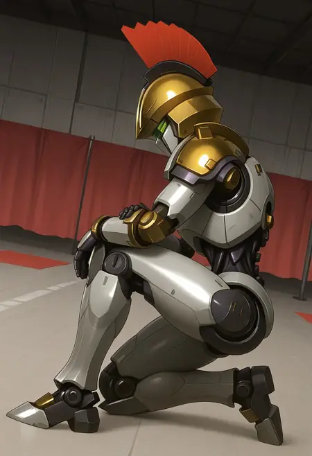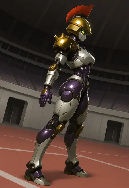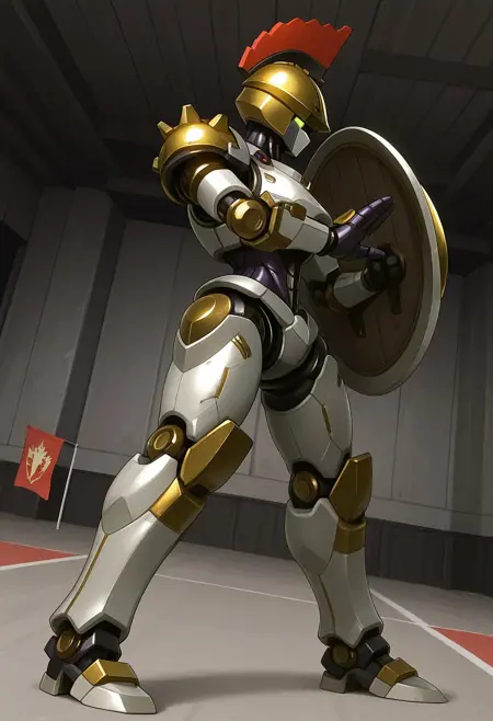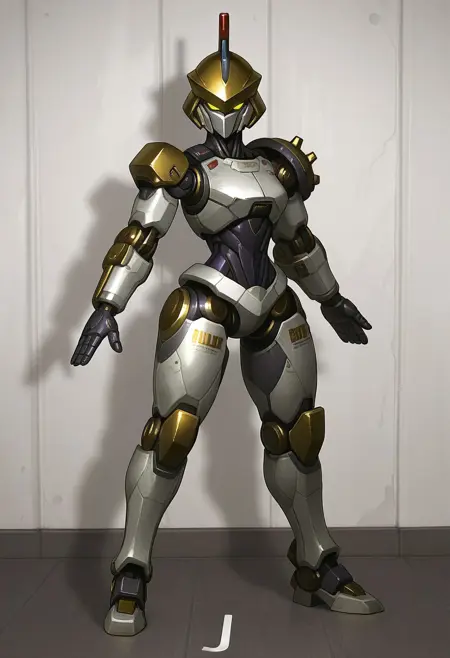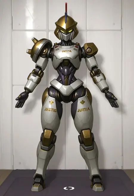 推奨されるプロンプト:Justitia_MR、白い装甲板(人間の特徴なし)、ゴールドのディテール、機械的な関節、赤いクレスト付きゴールドのヘルメット、非対称な右肩パッド、アンドロイド、ダークパープルの合成筋肉、ロボットガール、非人間的なテクスチャ、滑らかな表面、ツヤのあるディテール。