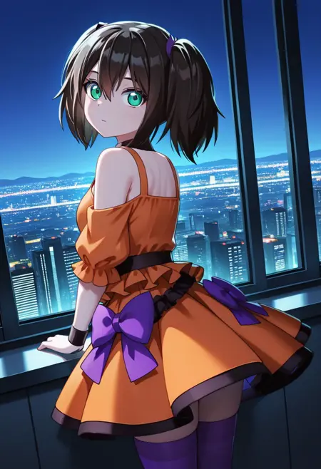 nazani, 1명의 여자, 녹색 눈, 검은 머리, 트윈테일 헤어스타일