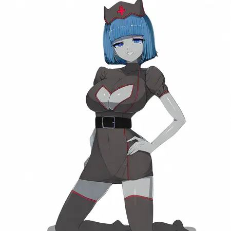nurse_hat, cross_symbol, short_sleeves, short_dress, belt, thighhighs