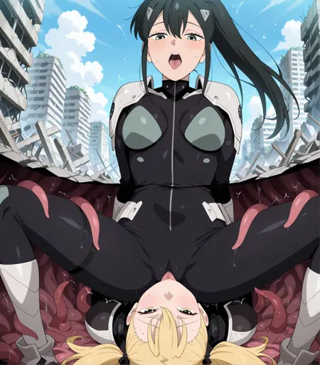 tentacles, ass, 2girls,Stuck in the Ground,