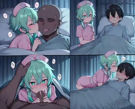 10. 간호사가 환자의 머리를 만지며, 담요 아래에서 구강 성교,