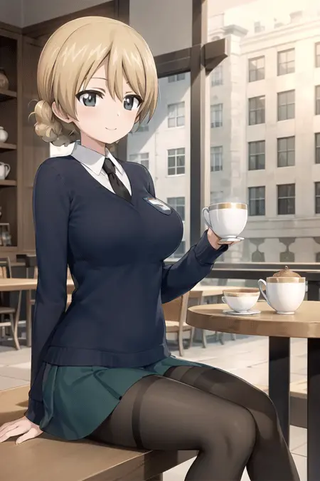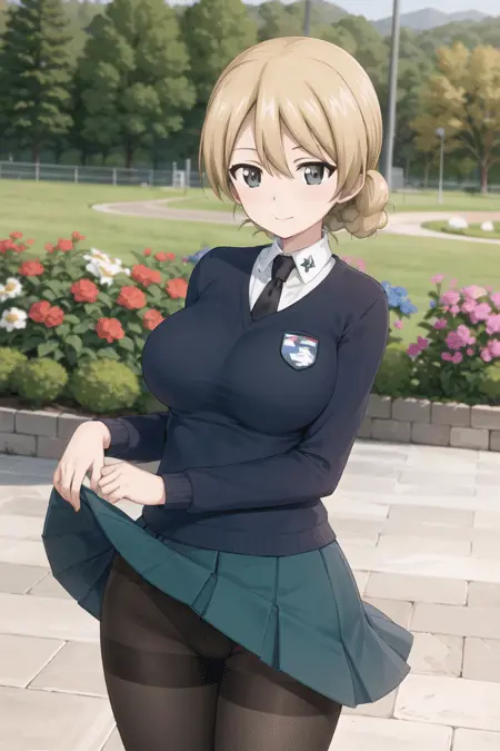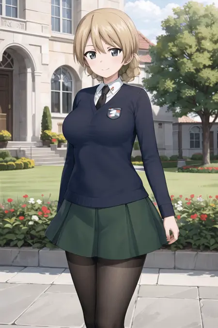 st. gloriana's school uniform, blue sweater, blue skirt, black necktie, white shirt, black pantyhose,st. gloriana's \(emblem\),