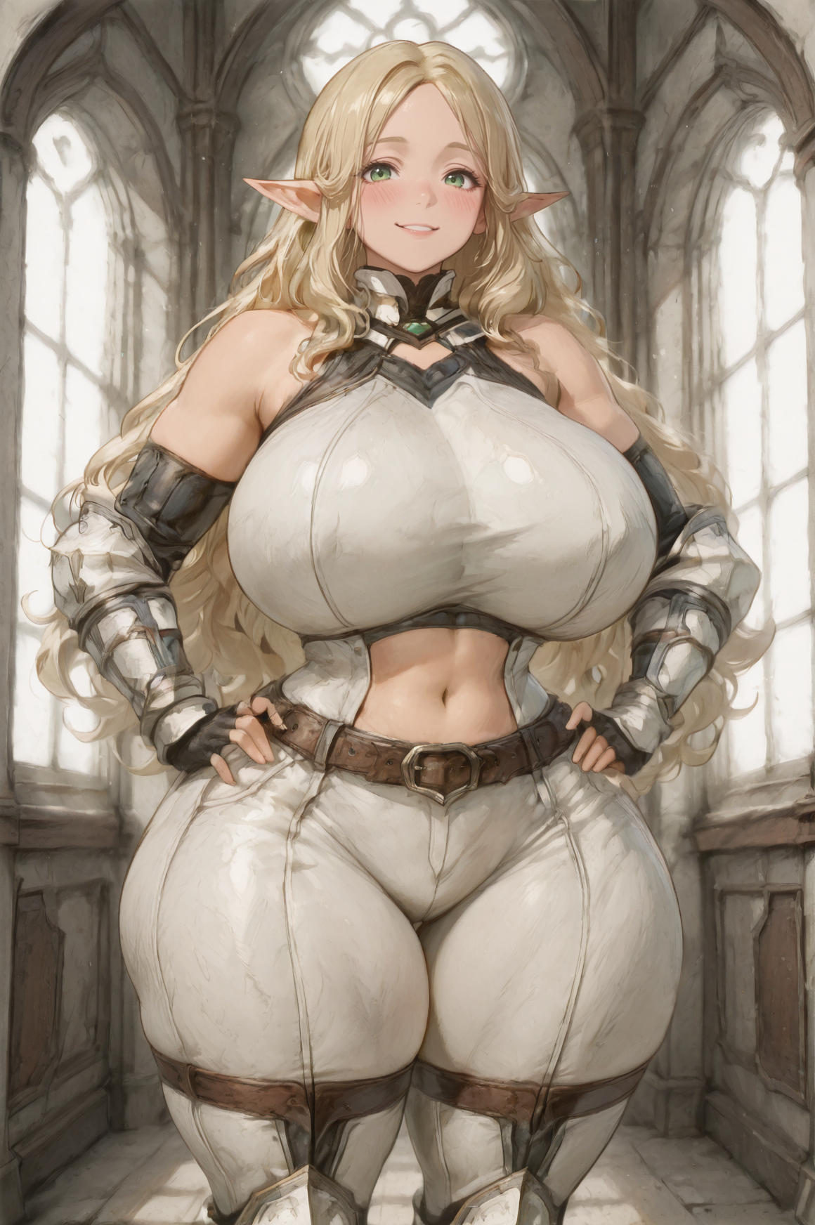 magna armor, white armor, leather armor, midriff, open shoulders