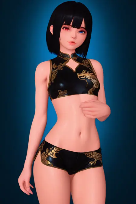 bare shoulders,sleeveless,black crop top,dragon print,chinese clothes,black shorts,short shorts,black footwear,flats,alternative costume,