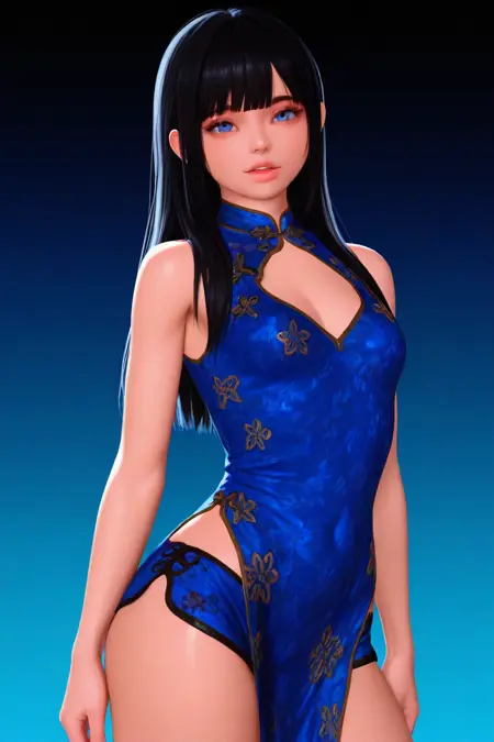 blue dress,china dress,chinese clothes,sleeveless dress,bare shoulders,cleavage cutout,floral print,side slit,pelvic curtain,blue shorts,short shorts,blue footwear,flats,
