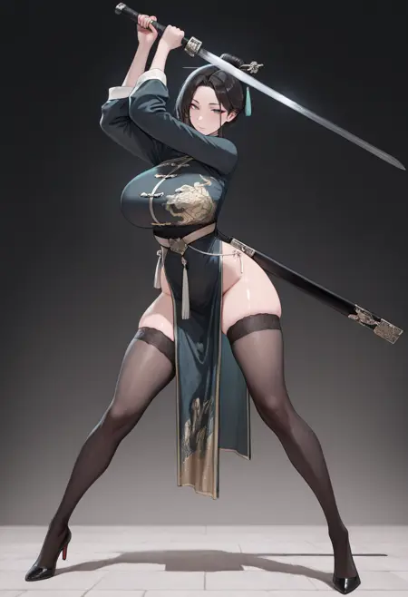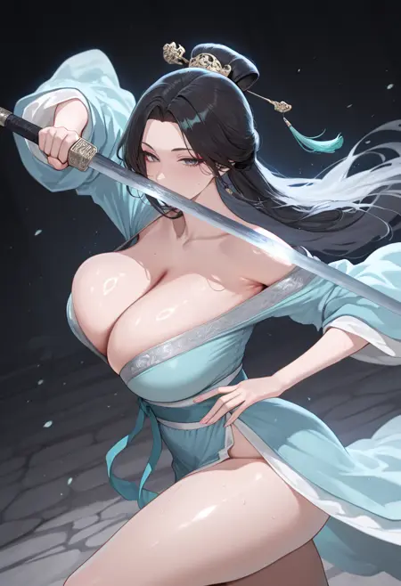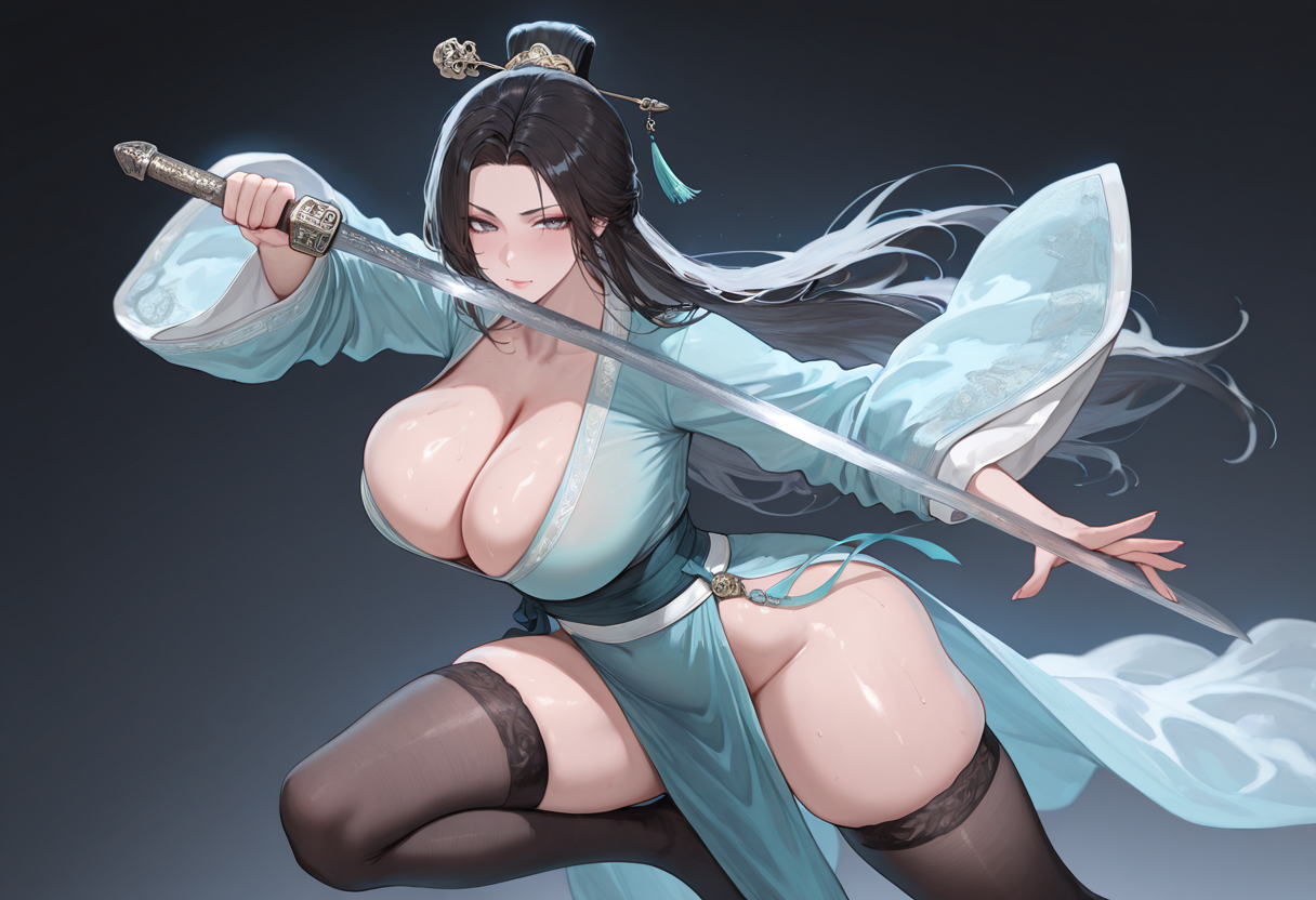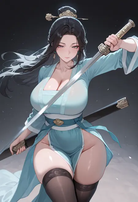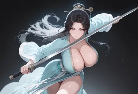 트리거 단어: chinese sword, hansword, | holding sword, | sheath | sword on back