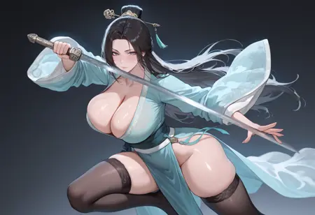 Trigger word:chinese sword, hansword, | holding sword, | sheath | sword on back