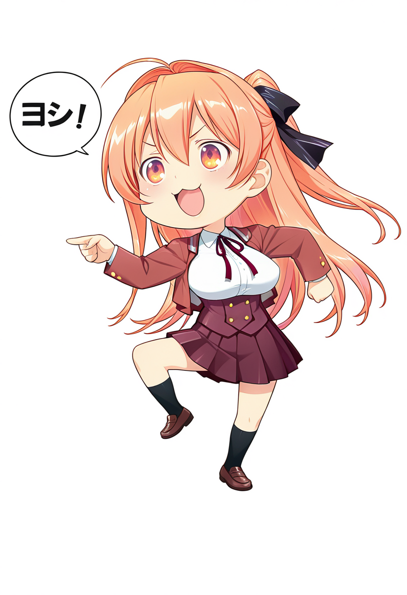 트리거 단어: m1kam1_ak1ra, 긴 머리, 플랫테일, 오렌지색 머리, 오렌지색 눈, 머리 리본