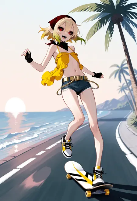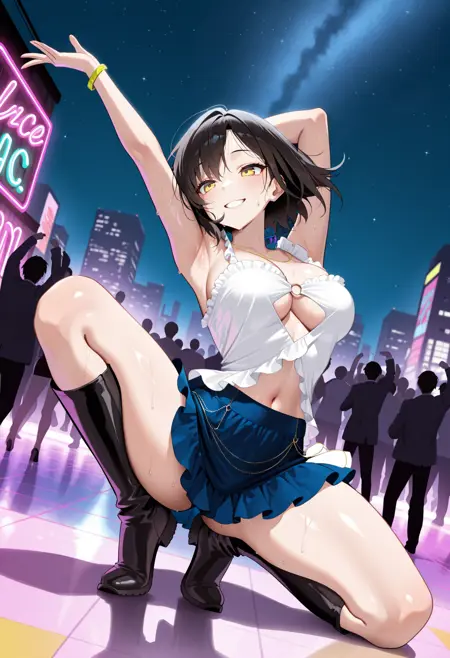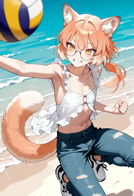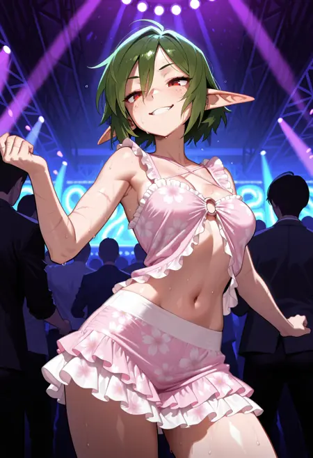 Top: frills top, sleeveless top, straps top, clothing cutout, clothed cutout, midriff cutout, navel,