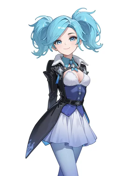 evie \(paladins\), mage outfit, black jacket, boots, light blue pantyhose