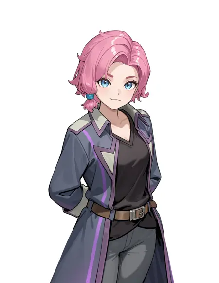 maeve \(paladins\), burglar outfit, grey pants, boots, gloves, purple coat