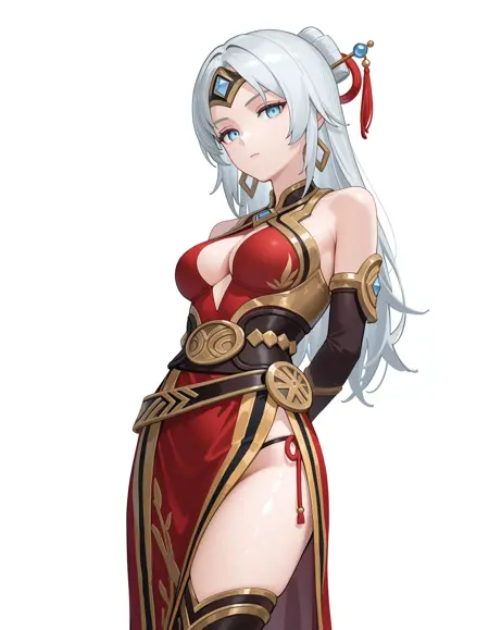 lian \(paladins\), scion outfit, thigh boots, arm gloves, hair stick