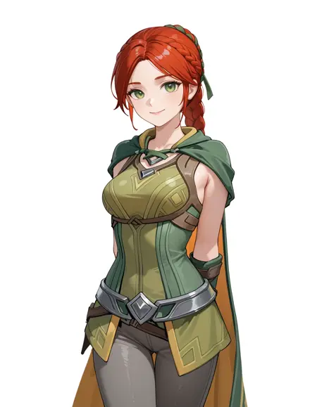 cassie \(paladins\), huntress outfit, cape, gloves, boots, grey pants