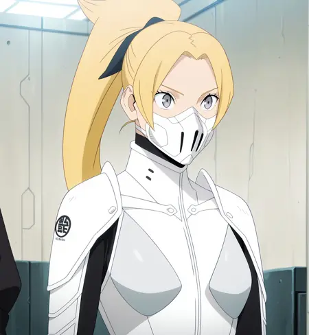 mask, grey eyes, armor, bodysuit, upper body, k_hikari